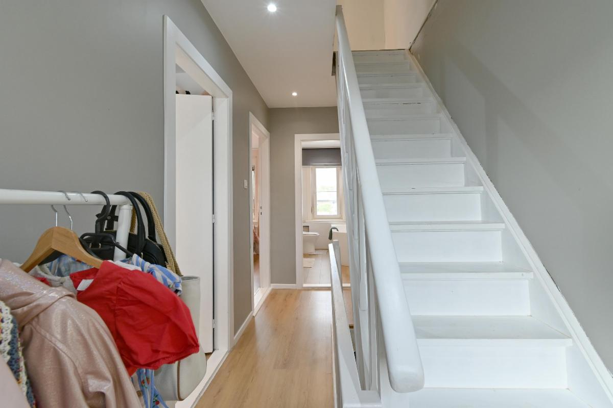 Verdiep 1: moderne badkamer (toilet, lavabo en ligbad) en 2 slaapkamers
