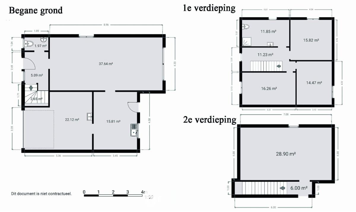 Eerste verdieping: gang, ruime gerenoveerde badkamer, 3 slaapkamers.