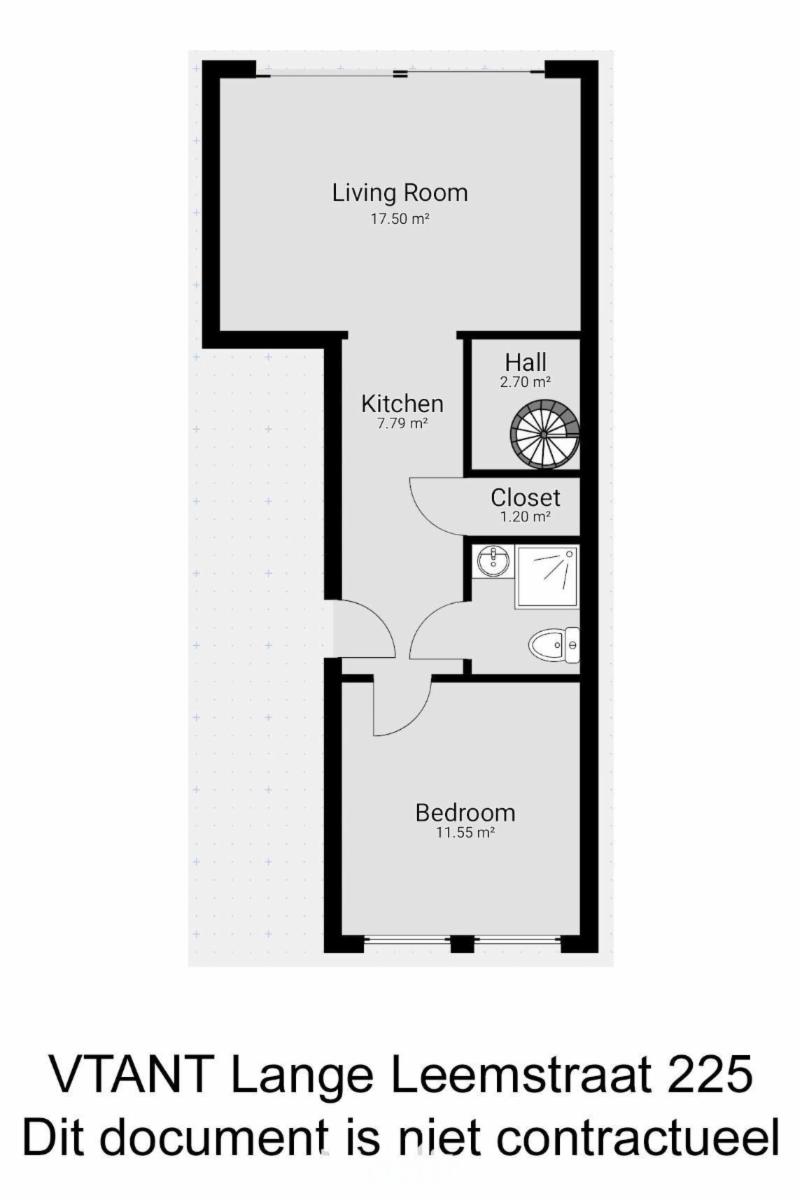 Indeling: inkomhal, berging, badkamer, leefruimte met open keuken, slaapkamer en koer.