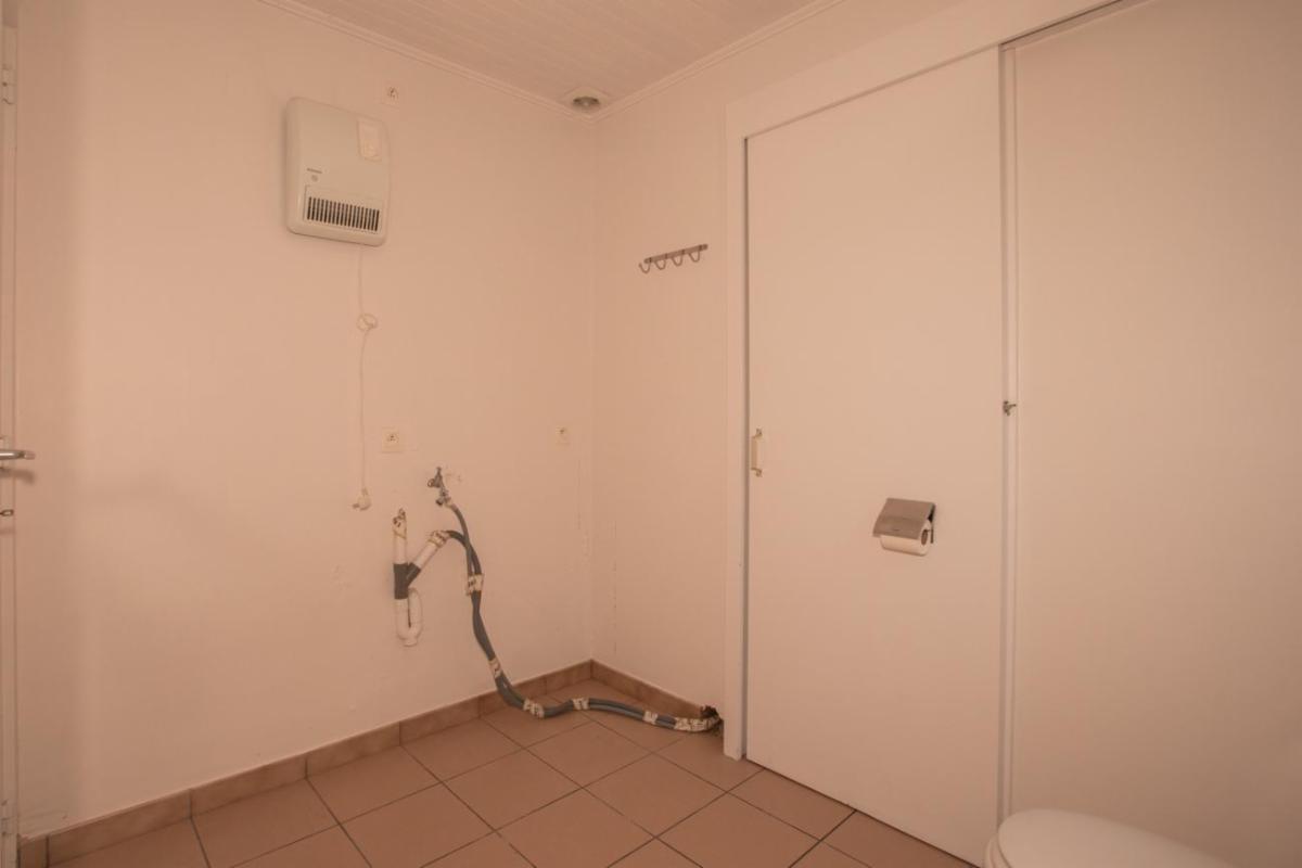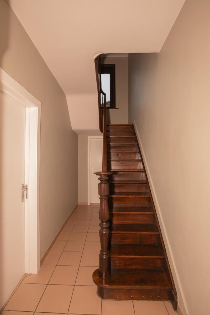 Gelijkvloers: living, keuken, badkamer, traphal.