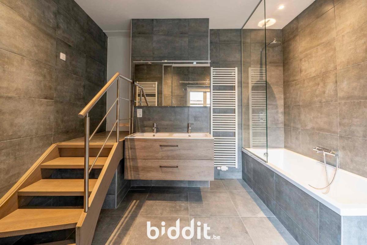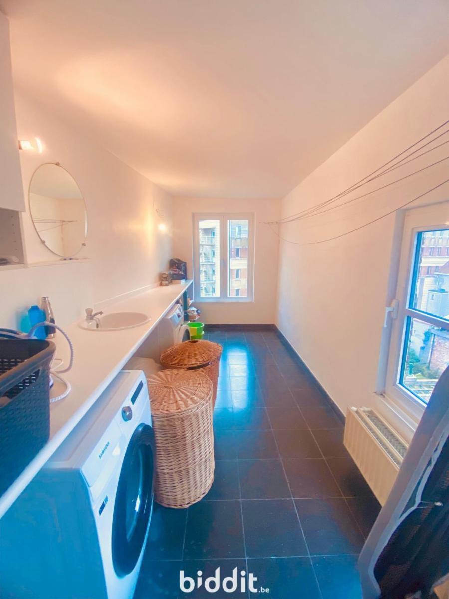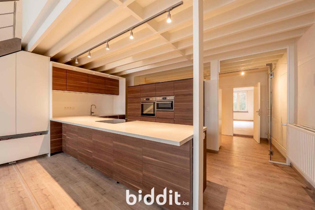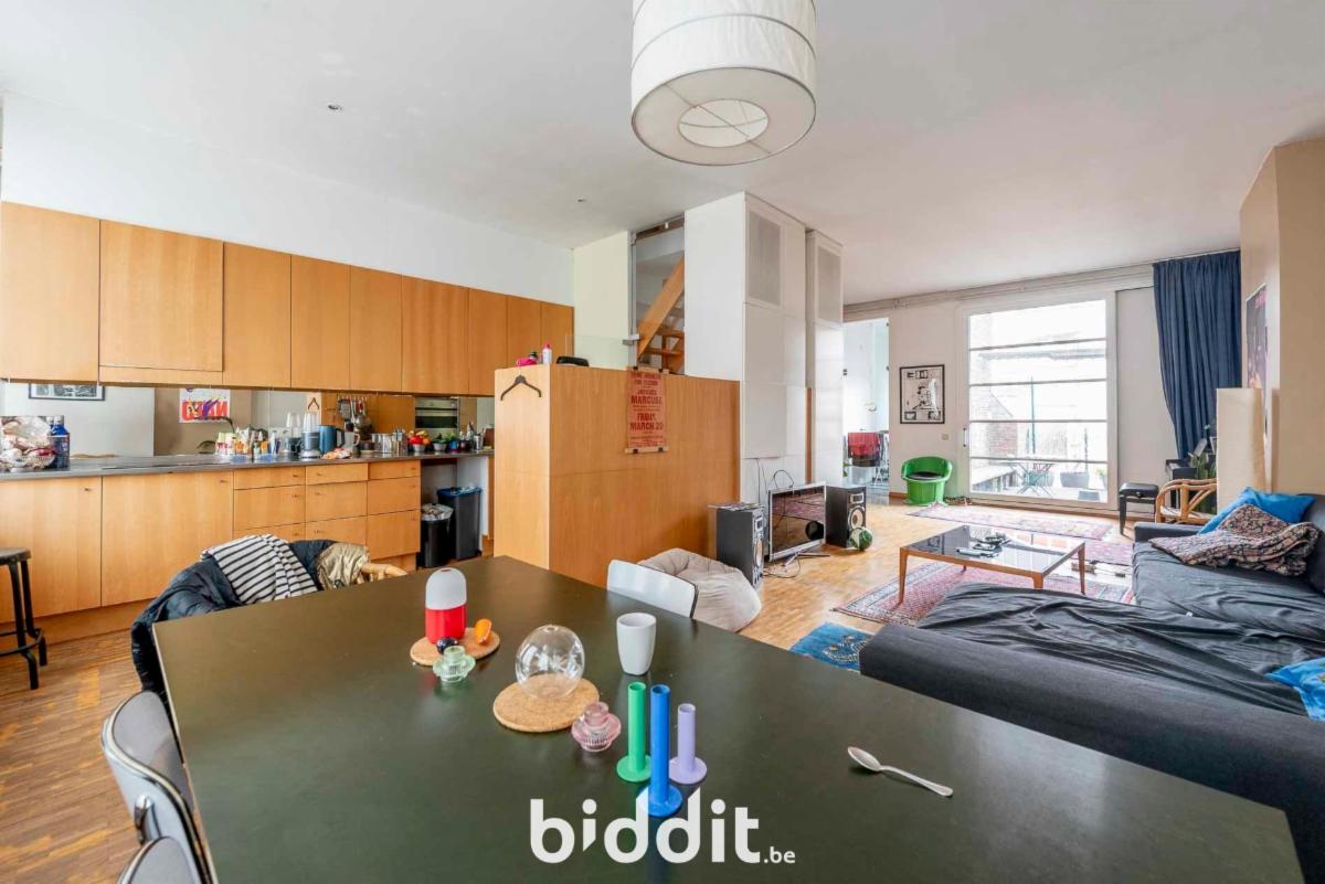 Uniek triplexappartement met op de derde verdieping een inkom met bergruimte, een wc met lavabo en een ruime living met open keuken en terras. Op de vierde verdieping bevindt zich een badkamer met bad en lavabo, een aparte wc, twee slaapkamers een dressing en een wasruimte. Op de vijfde verdieping bevindt zich een slaapkamer met mooi uitzicht over de stad en de omliggende omgeving.