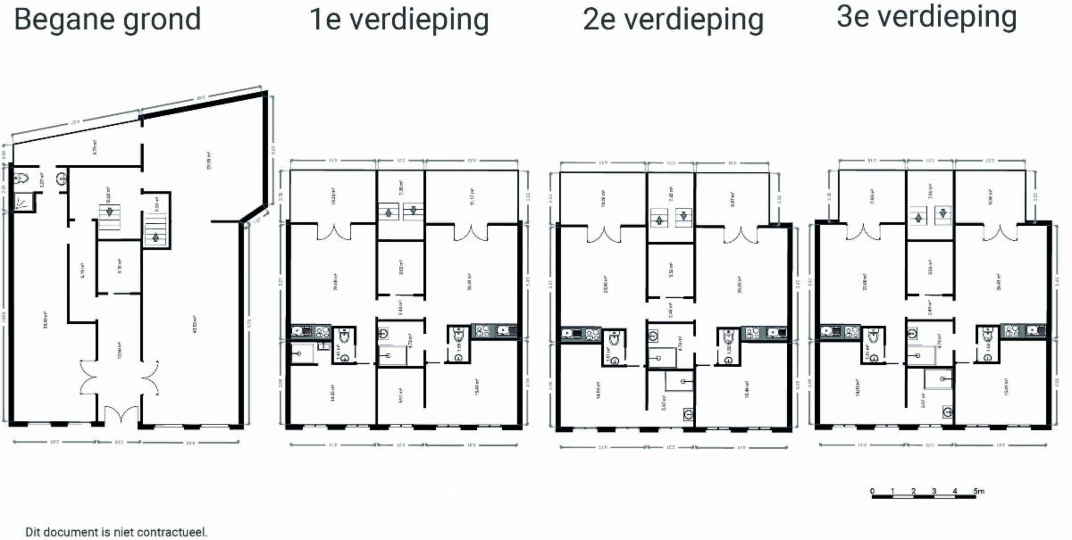 Op de tweede en derde verdieping bevinden zich telkens 2 vakantielogies (units 2.1 en 2.2 op de tweede verdieping en units 3.1 en 3.2 op de derde verdieping).