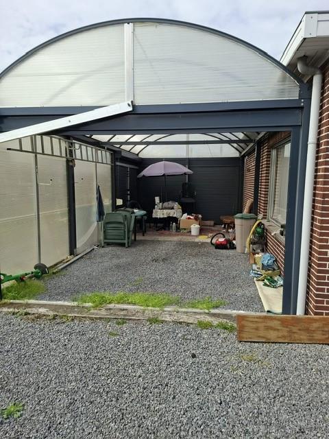 Er is een tuin aanwezig, evenals een carport en een houten tuinhuis.