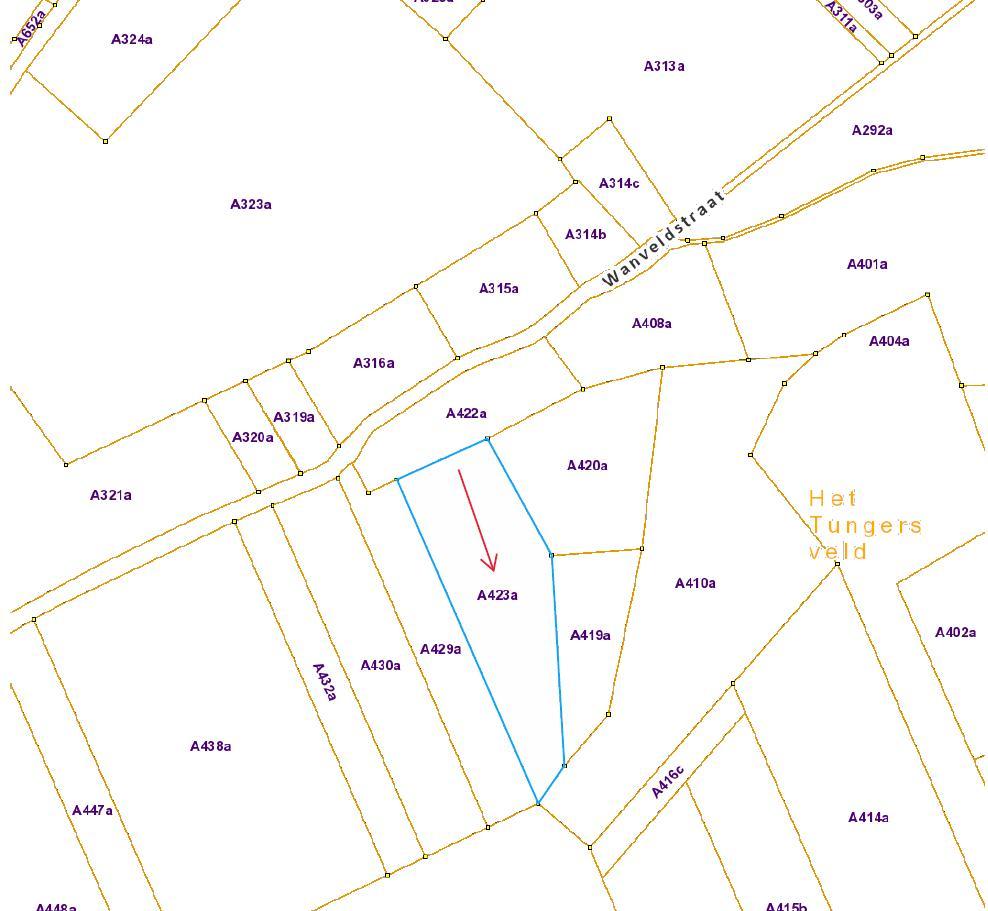 Het perceel gelegen te Hoeselt (Werm) nabij de Wanveldstraat, ter plaatse genaamd 'Het Tungers Veld' (sectie A nummer 423A), is verpacht. De verkoop geschiedt ONDER DE OPSCHORTENDE VOORWAARDE VAN NIET-UITOEFENING VAN HET RECHT VAN VOORKOOP DOOR DE PACHTER.
