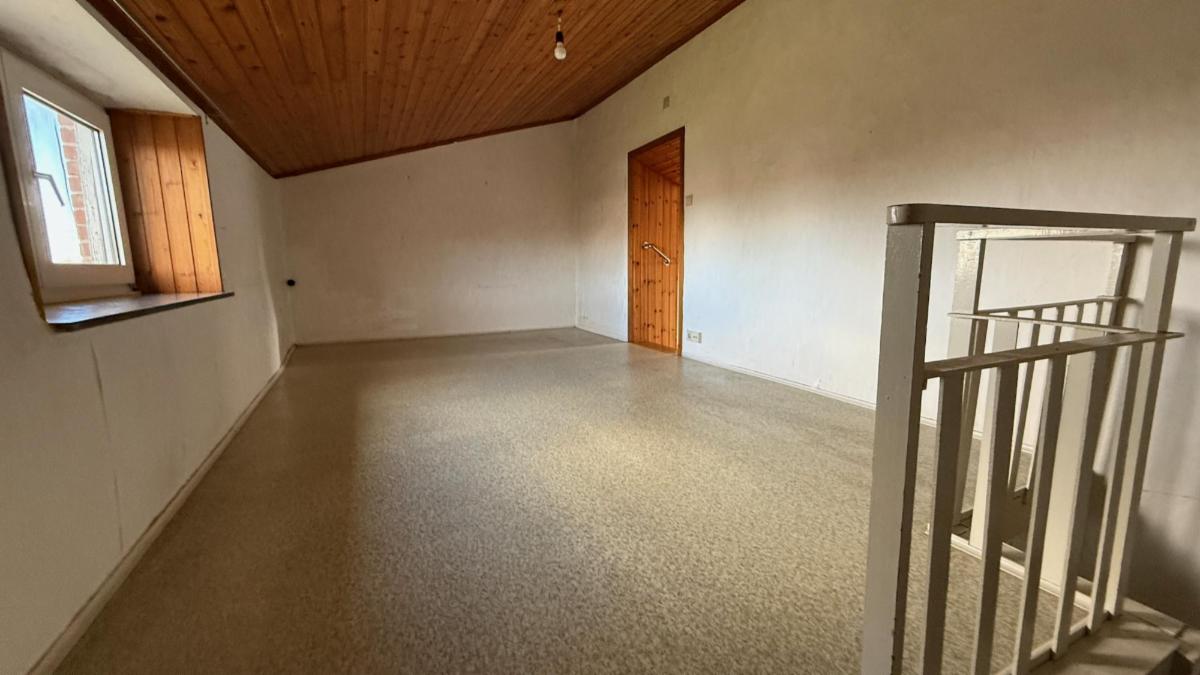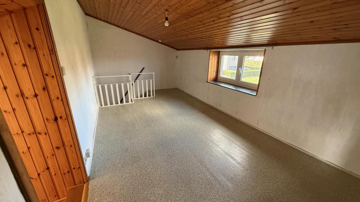 - Au 2ème étage : Une grande chambre mansardée de type grenier aménagé, accessible via un véritable escalier fixe.