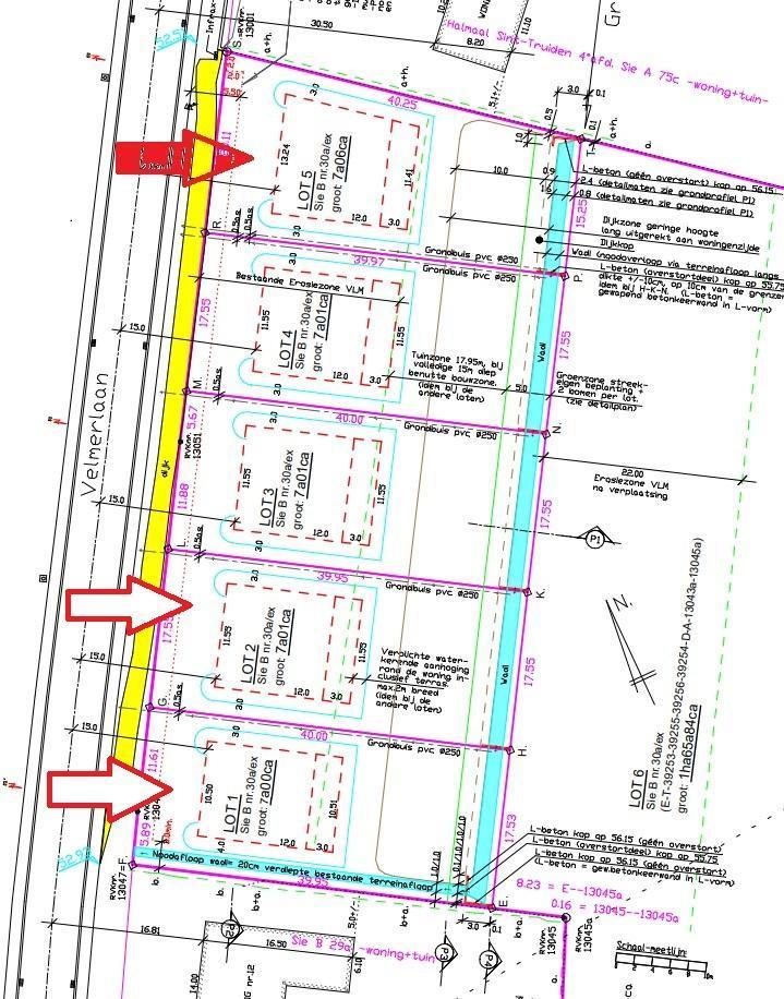 Rustig en landelijk gelegen percelen bouwgrond voor open bebouwing te Sint-Truiden (Velm), Velmerlaan, links van huisnummer 12, sectie B nr. 30A P0000/deel, groot volgens meting 7a00ca (LOT 1) - 7a01ca (LOT 2) - 7a06ca (LOT 5) op het verkavelingsplan; goede verbinding. De verkoop van de percelen in hun totaliteit (loten 1-2-3-4-5) is bespreekbaar. P score: B