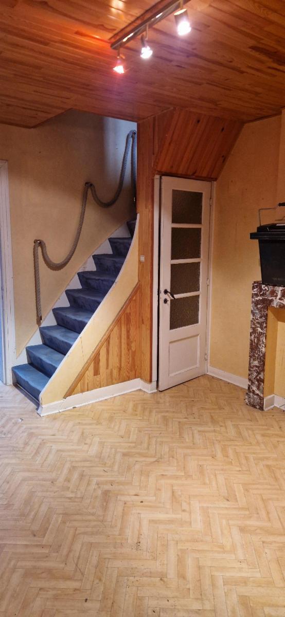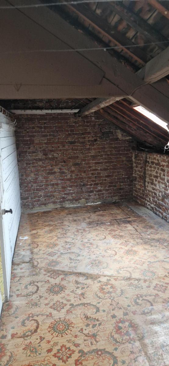 au rez-de-chaussée : une pièce en entrant, une pièce en arrière (cuisine non meublée) ; à l'étage: 2 chambres et grenier aménageable