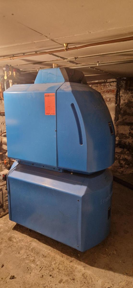 composition au sous-sol: chaufferie avec chaudière et citerne à mazout, wc, lavabo, baignoire