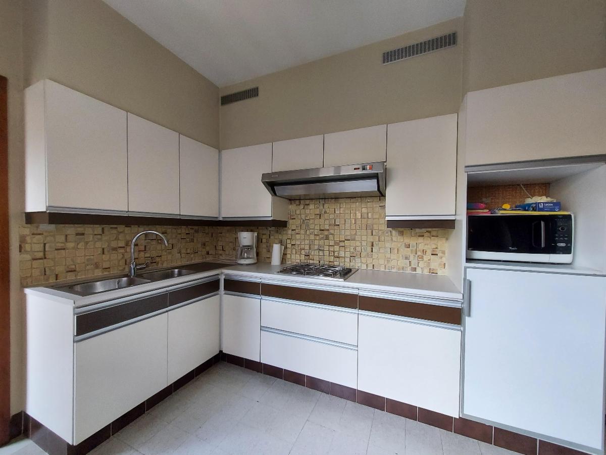 De woning omvat op het gelijkvloers een inkom, vestiaire, toilet met douchecel, leefruimte met zithoek en eethoek, keuken, wasplaats/achterinkom.