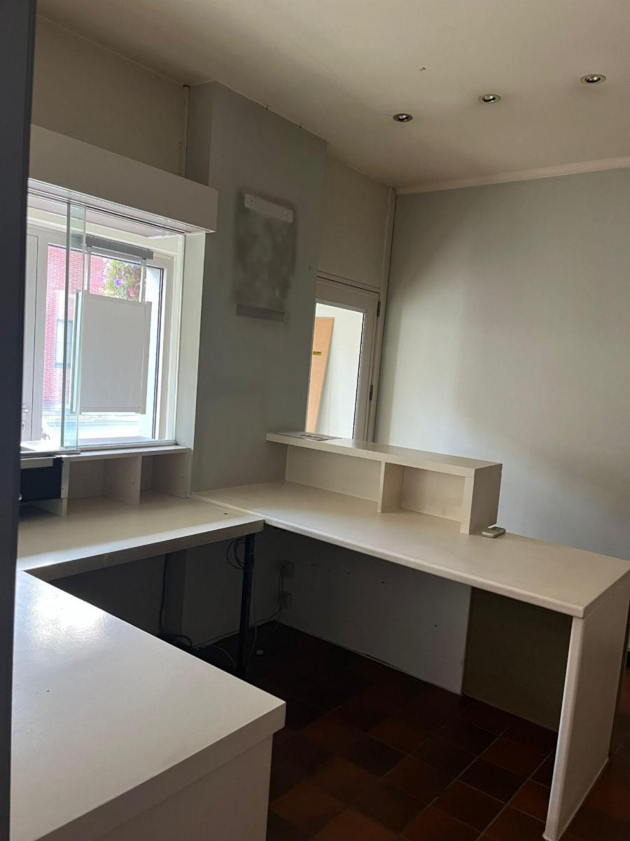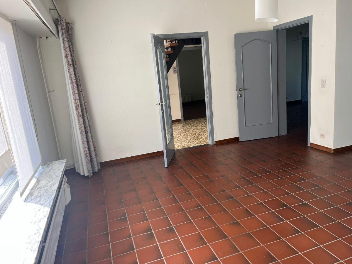 De woning heeft een afzonderlijke praktijk- of kantoorruimte vooraan met aparte inkom. Het woongedeelte bestaat uit inkomhal, L-vormige woonkamer met inbouwcasette met charmante schouwmantel. Naast de leefruimte bevindt zich de afzonderlijke en rustieke keuken met zicht op de tuin (keramische kookplaat, dampkap, vaatwasser, dubbele spoelbak, combi-oven, ijskast en voldoende aanrecht en opbergkasten).