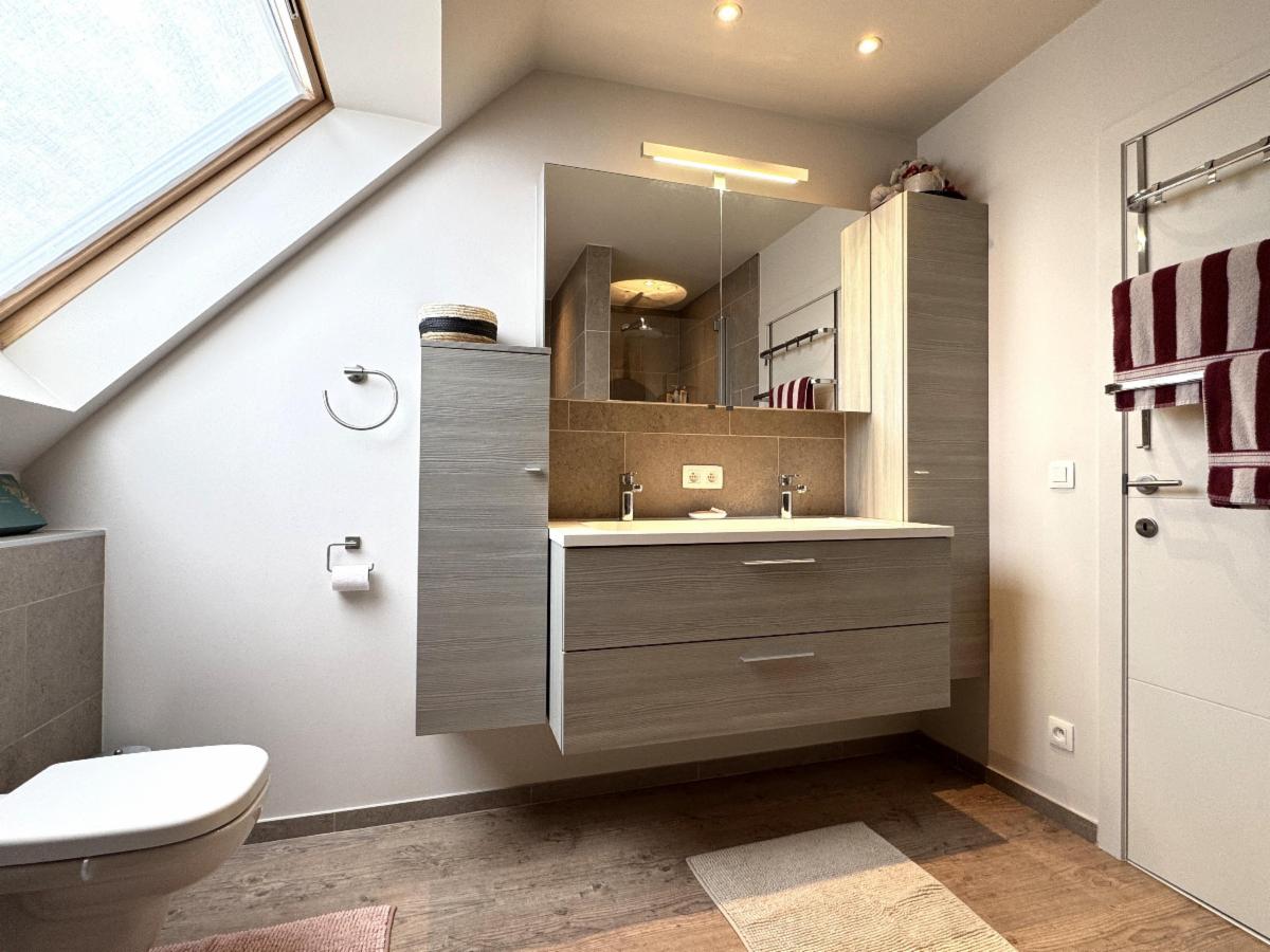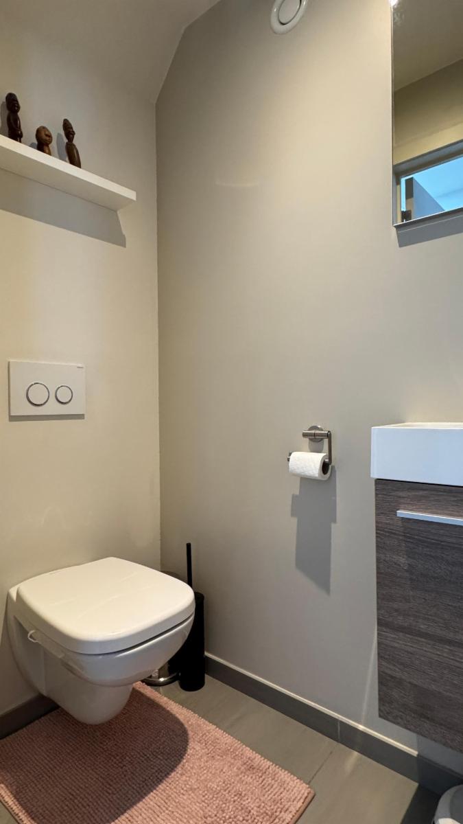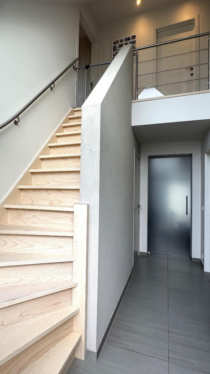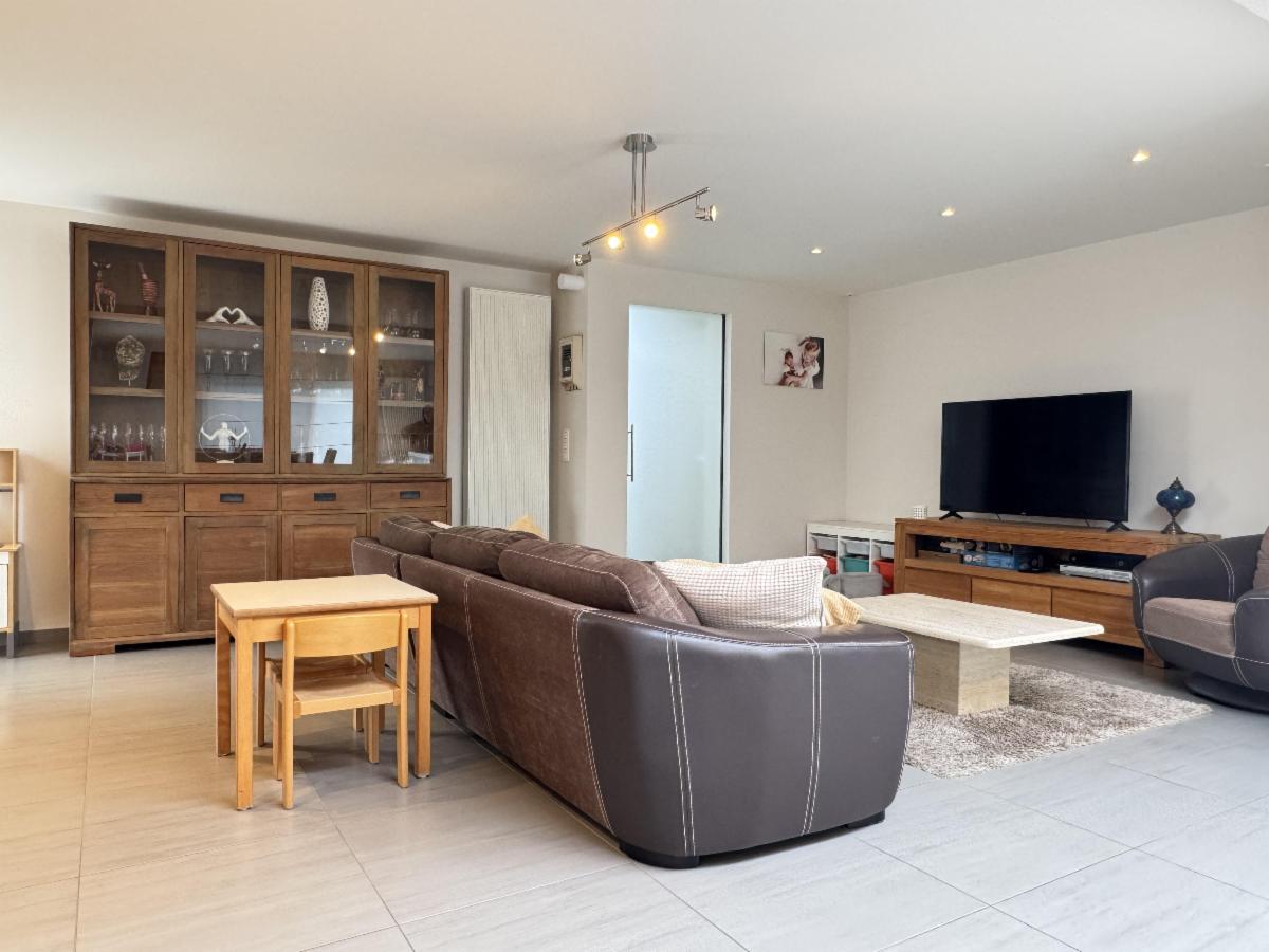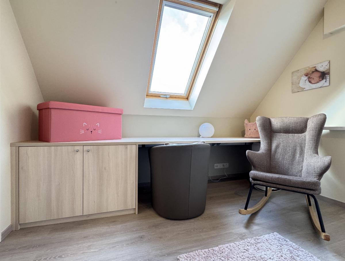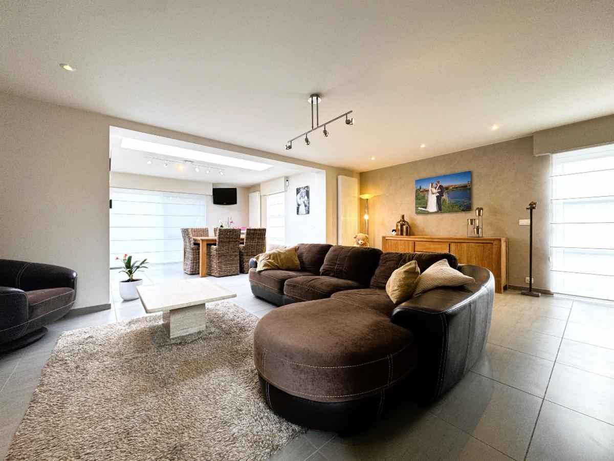 Ruime en lichtrijke living met eet-en zithoek, geïnstalleerde keuken met eiland (vaatwas, oven, micro-golf, inductie-kookplaat, dampkap "Novy"), wasplaats, bureau met ingemaakte kasten, slaapkamer beneden.