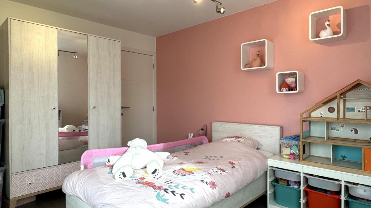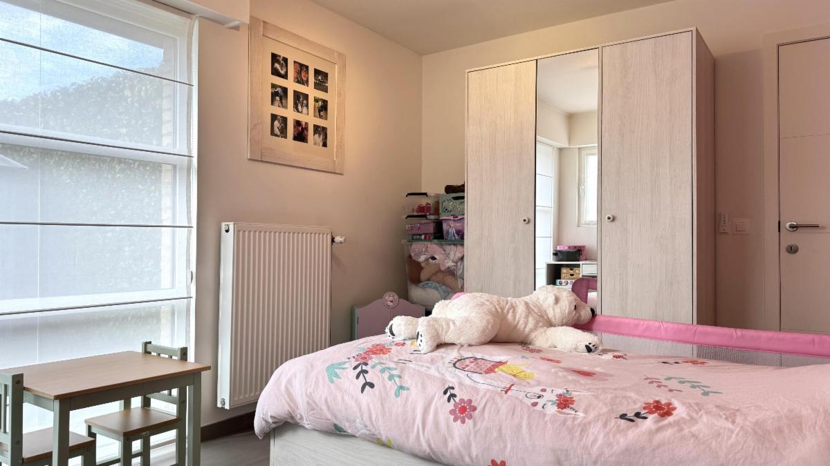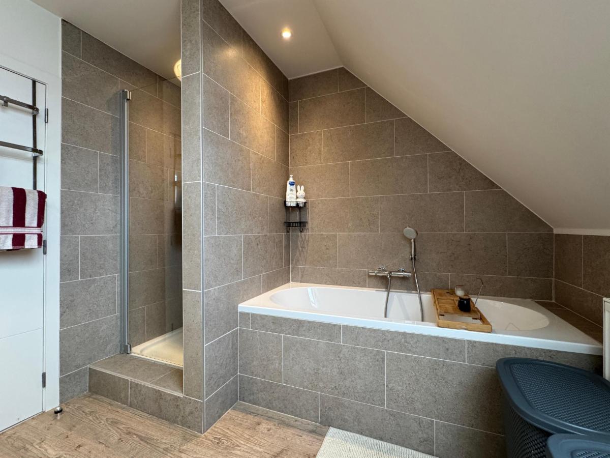 Verdiep: 2 ruime slaapkamers met ingemaakte kasten, ingerichte badkamer (douche, dubbele lavabo, ligbad en toilet).