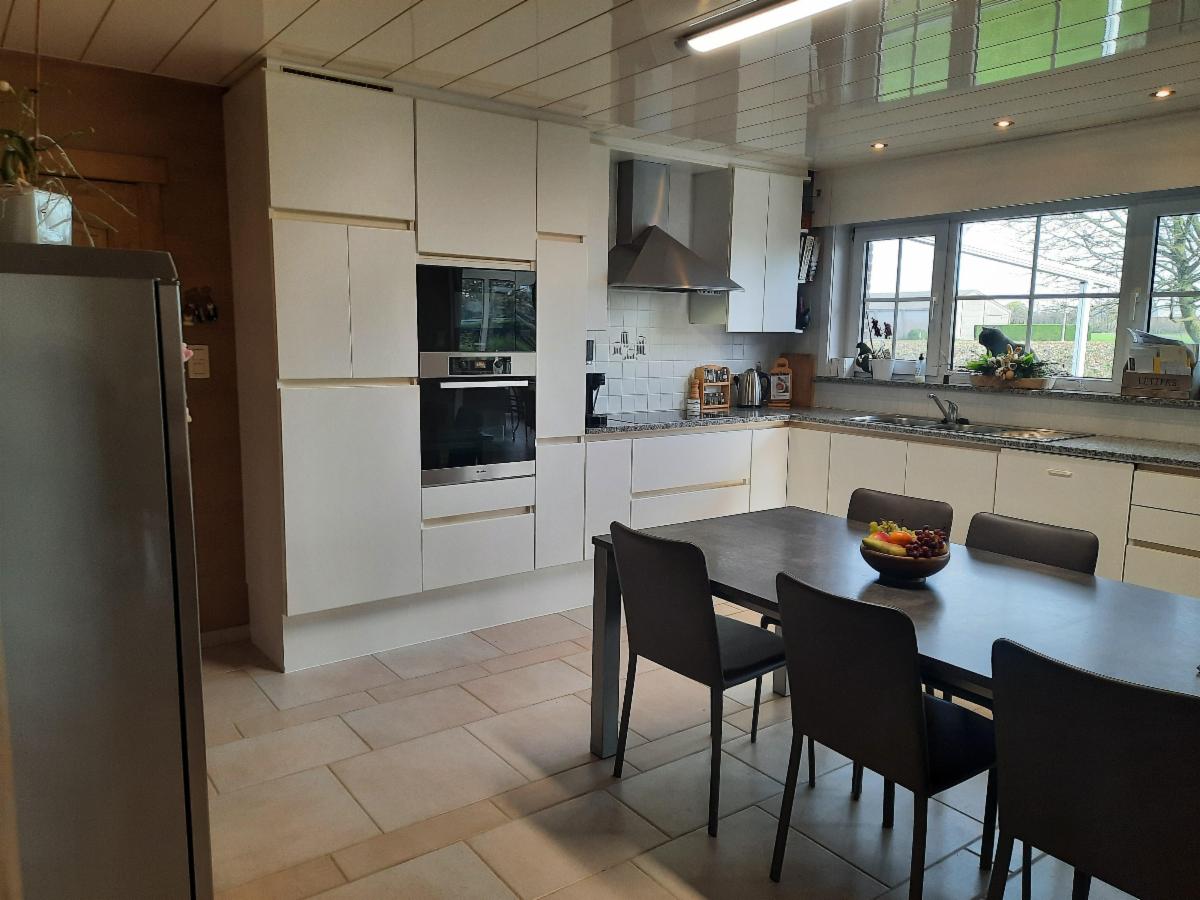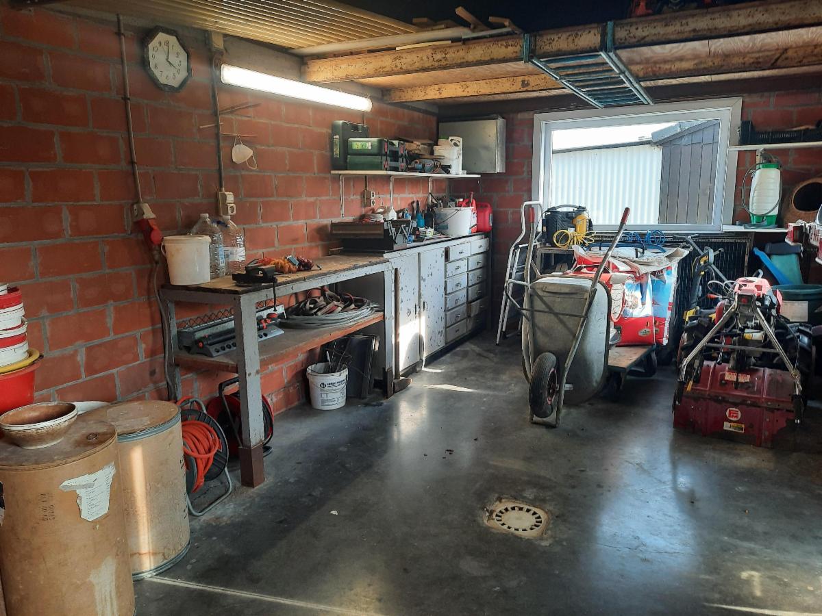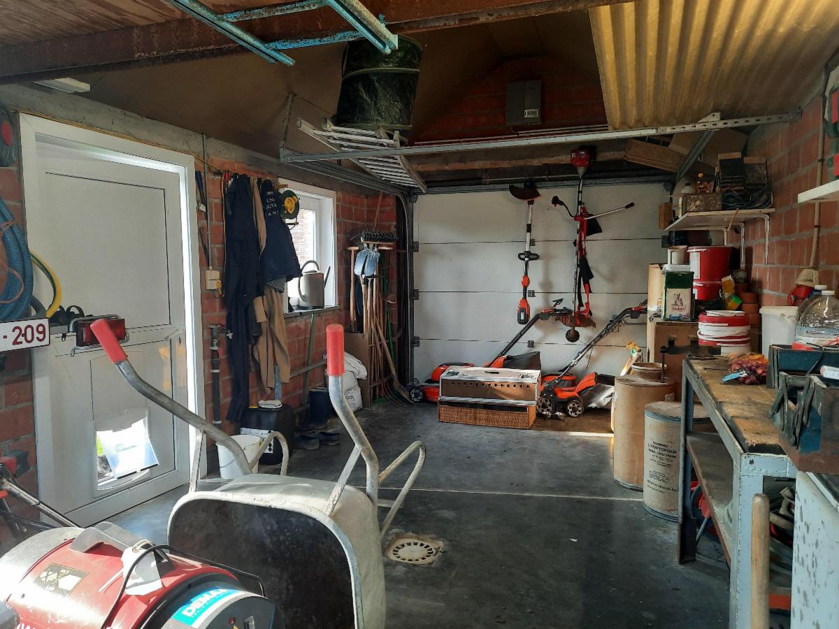 Deze ruime en landelijk gelegen woning bevindt zich in Oostnieuwkerke. De woning omvat op het gelijkvloers: een inkomhal, een ruime woonkamer met een ingebouwde houtkachel en eetplaats, een grote keuken met inbouwtoestellen, een ruime veranda, een toilet, een grote garage met tal van opbergruimte, een berging, een badkamer (met ligbad, dubbele lavabo en douche) en 4 slaapkamers. Een grote troef van de woning is de grote zolderverdieping die met een vaste trap bereikbaar is. De zolder biedt u tal van mogelijkheden. In de grote en prachtige tuin kan u genieten van mooie vergezichten. Naast de woning is er een extra garage met tal van opbergruimte. In de tuin bevindt er zich ook een schuilhok en een duiventil. Een ruime oprit en een mooi en ruim terras.