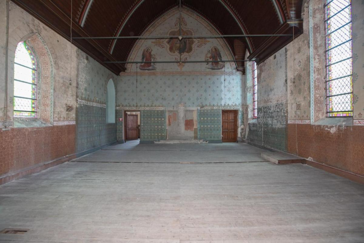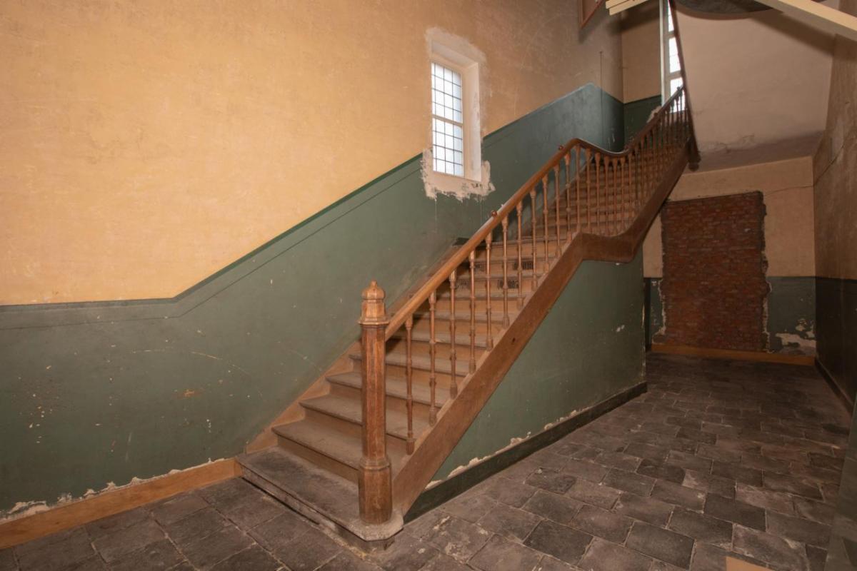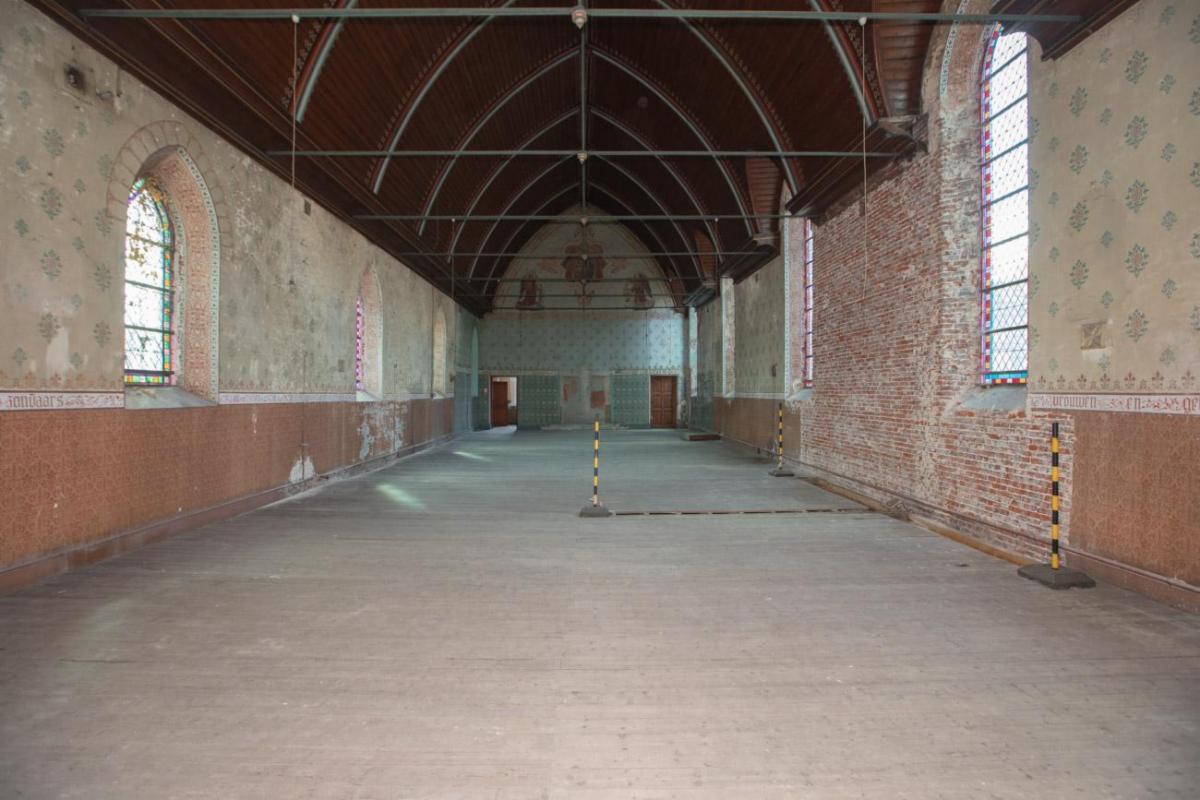 Bieden kan vanaf 18 mei om 12u tot en met 26 mei om 12u. Dit karaktervolle en historisch waardevolle pand bevindt zich op een absolute toplocatie in de Westmeers 33/35. De imposante gevel strekt zich uit van de Koolbrandersstraat tot de Sint-Obrechtsstraat, midden in de historische binnenstad van Brugge, vlak bij ’t Zand en op wandelafstand van het Concertgebouw Brugge. Het gebouw is beschermd als monument en opgenomen in de inventaris van het bouwkundig erfgoed. Het werd in 1881 ontworpen door de Brugse architect Karel Verschelde in neogotische stijl. In de voormalige bibliotheek bevindt zich op het gelijkvloers een monumentale benedenzaal met moerbalken en korbelen. Via een brede houten trap wordt toegang geboden naar de eerste verdieping waar een kapel met tribune te vinden is. De ruime zaal op de eerste verdieping wordt gekenmerkt door neogotische muurschilderingen, glas-in-loodramen en een Annunciatie-afbeelding in vierpasmotief. G score: C P score: C