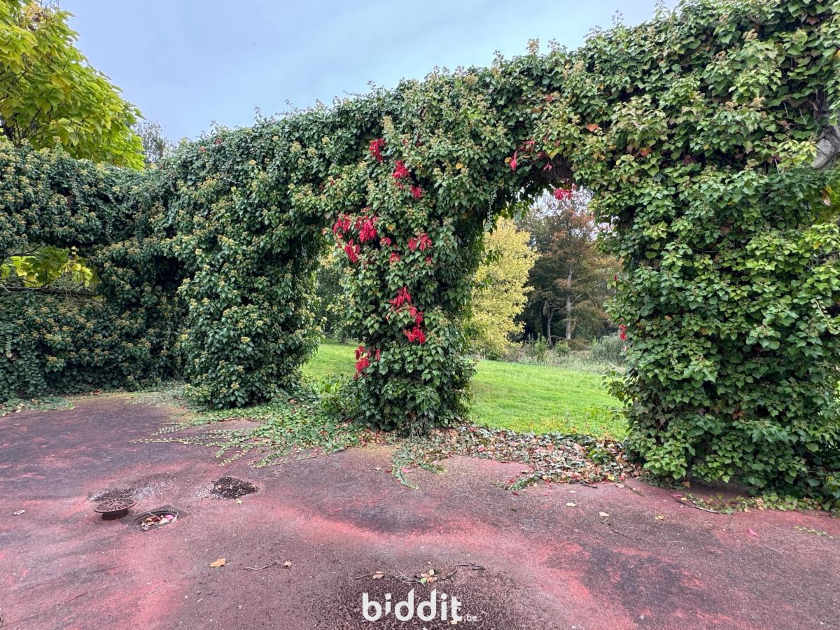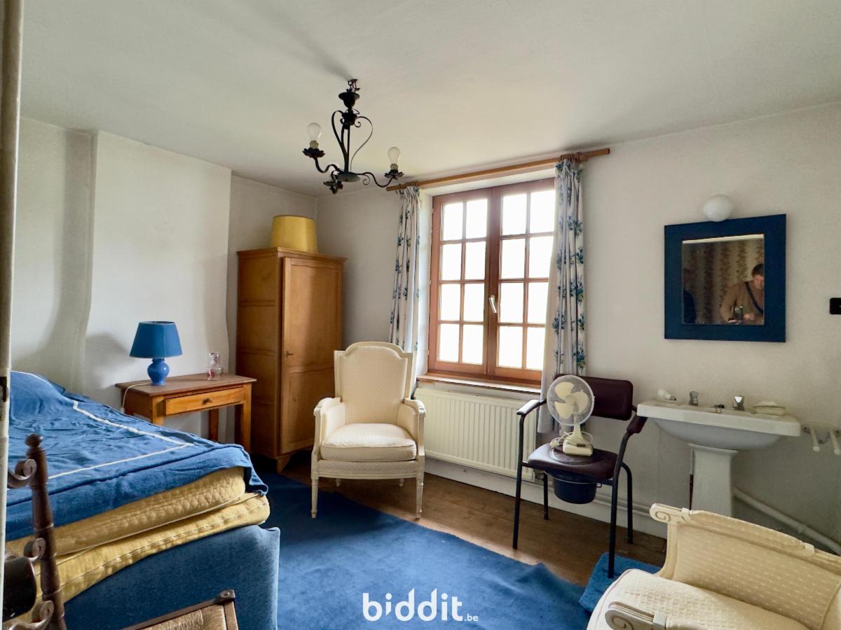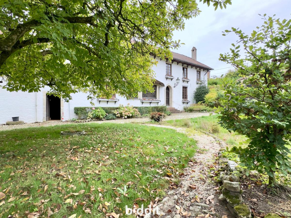 Au cœur de Bonlez, passé la porte cochère, s’ouvre une cour pavée pleine de charme, encadrée de deux bâtiments et offrant une vue splendide sur un vaste jardin vallonné, bordé par le ruisseau Le Train. L’ensemble est agrémenté d’arbres majestueux, d’une ancienne piscine, d’un grand potager et d’une serre.