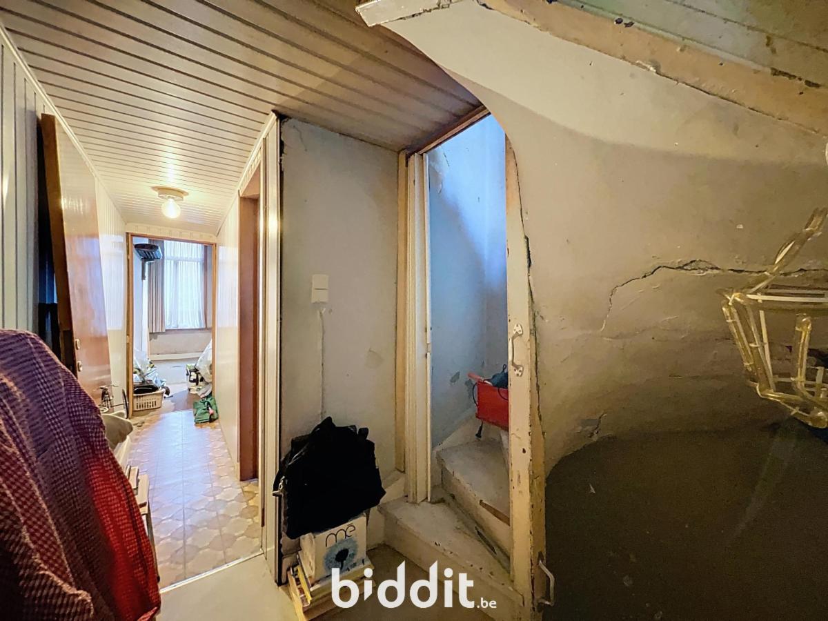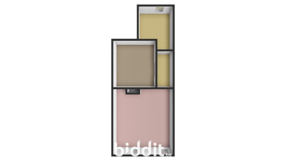 Indeling: Gelijkvloers: inkom, living, keuken, bergplaats, toilet; 1e Verdiep: 2 slaapkamers, badkamer; Zolder: berging en een zolderkamer die kan worden ingericht als extra slaapkamer, bureau of hobbyruimte.
