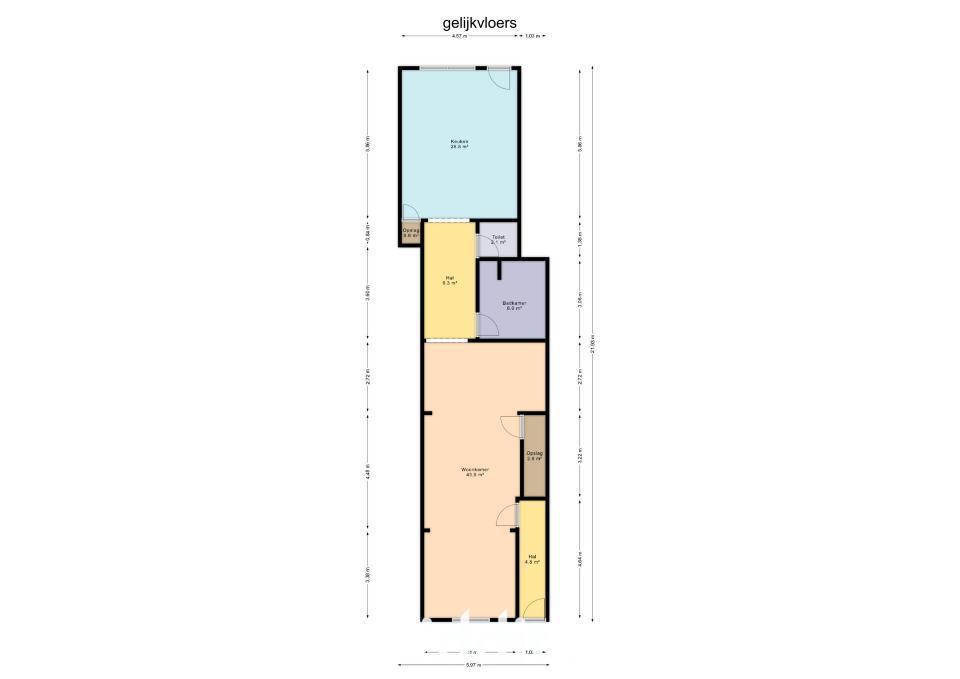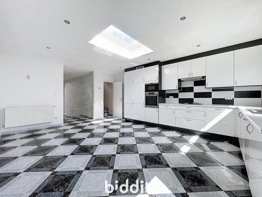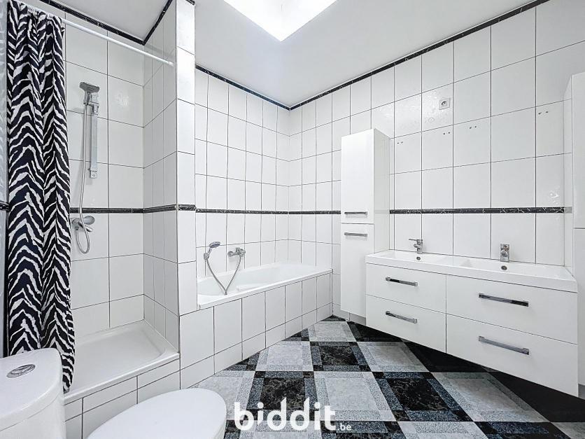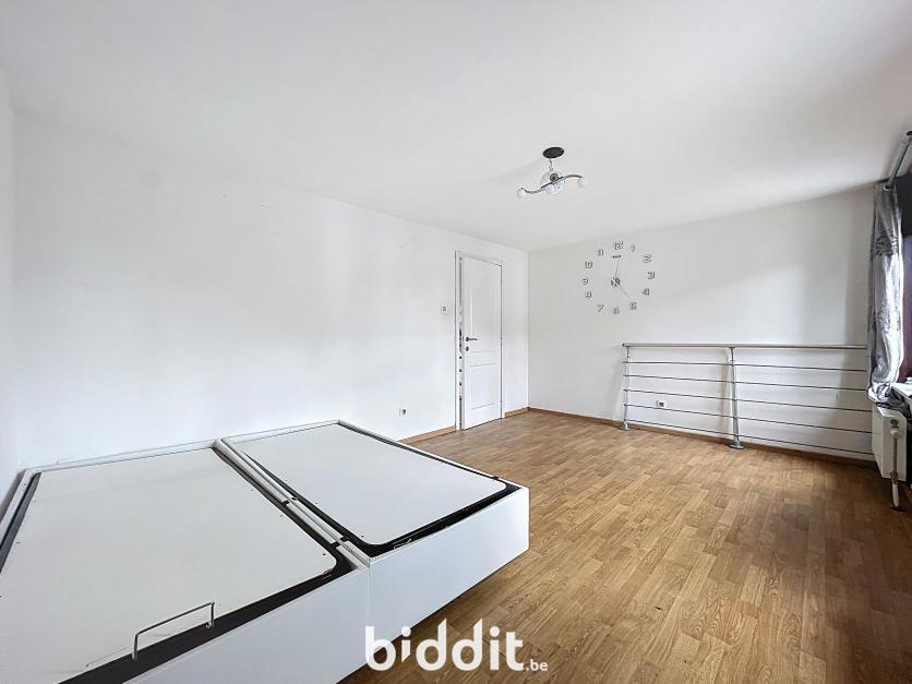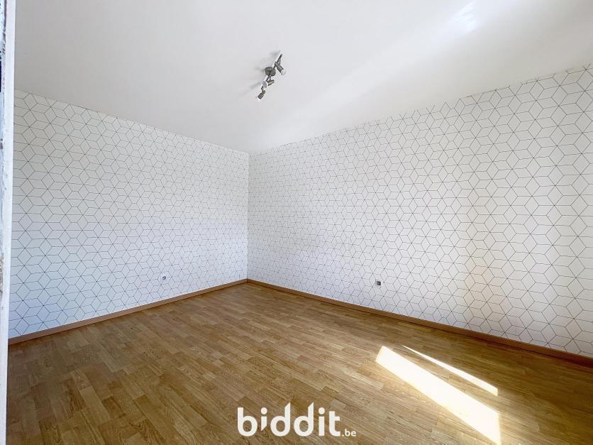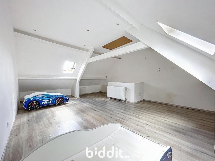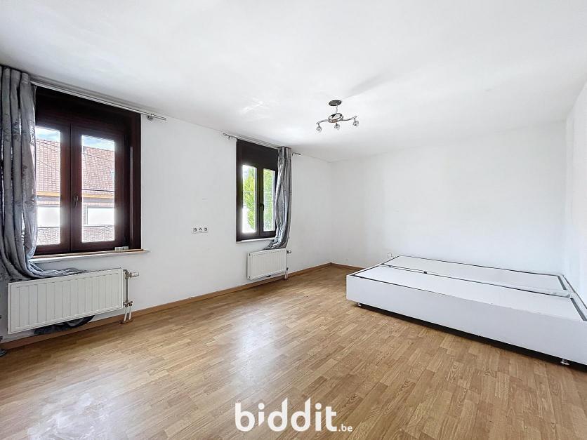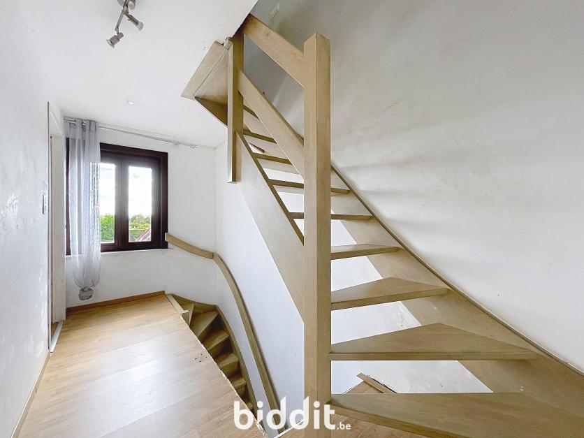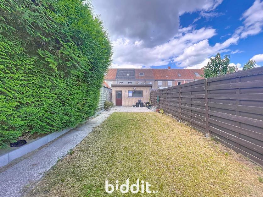 Gerenoveerde rijwoning met tuin, bestaande uit: Gelijkvloers: inkom met traphal, woonkamer, open keuken, badkamer, toilet en 2 bergingen; 1e Verdieping: traphal en 2 slaapkamers; Dakverdieping: zolderkamer.