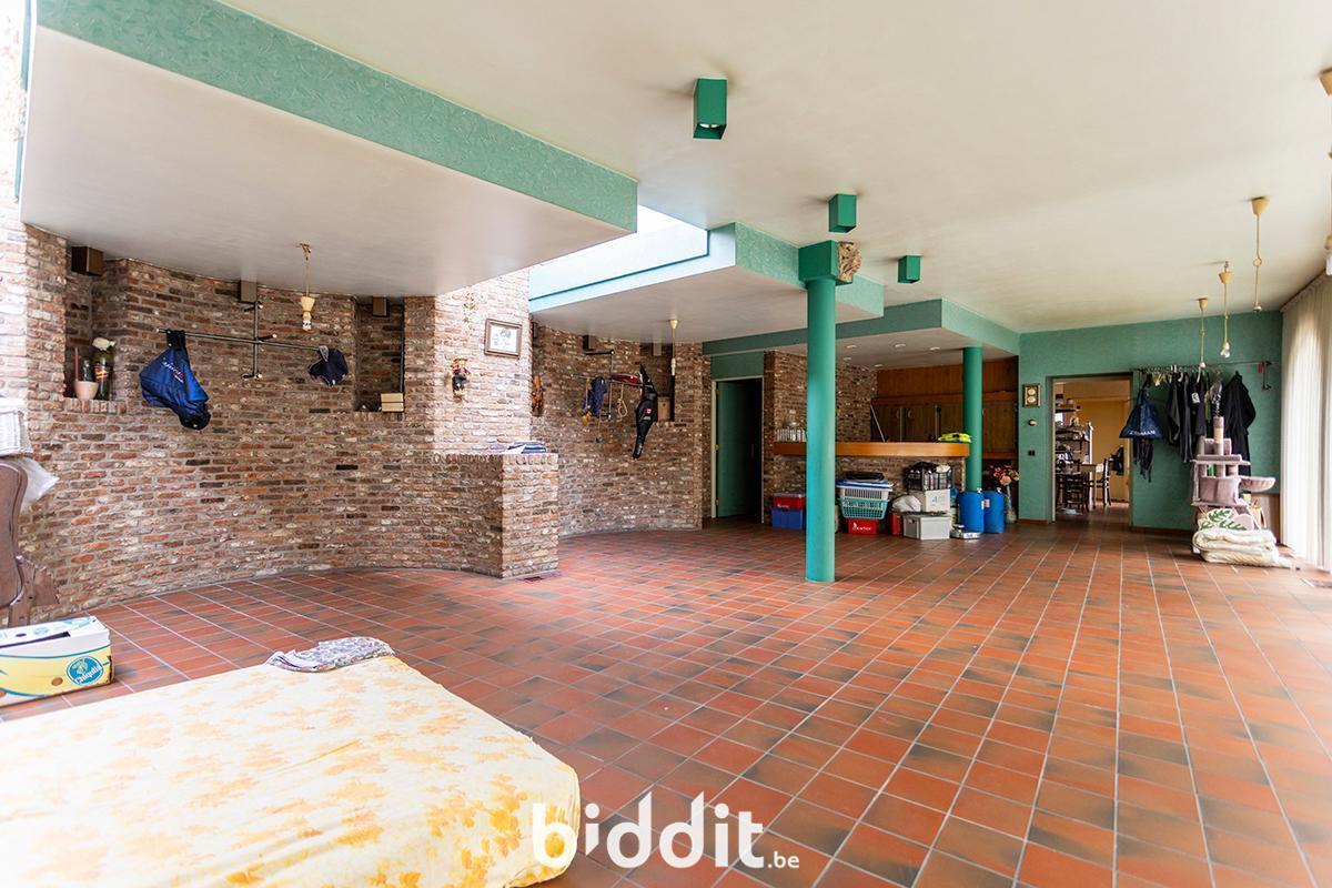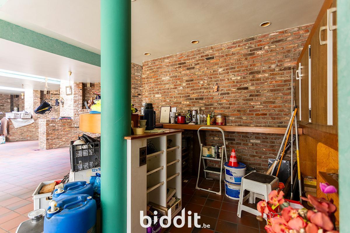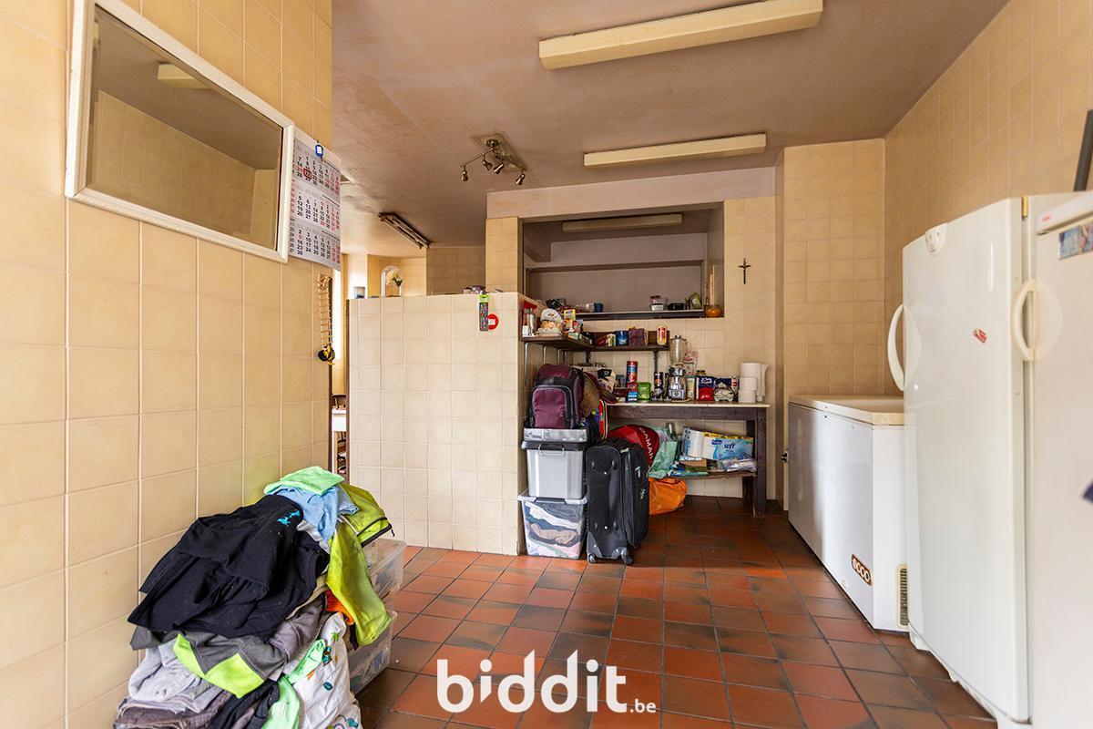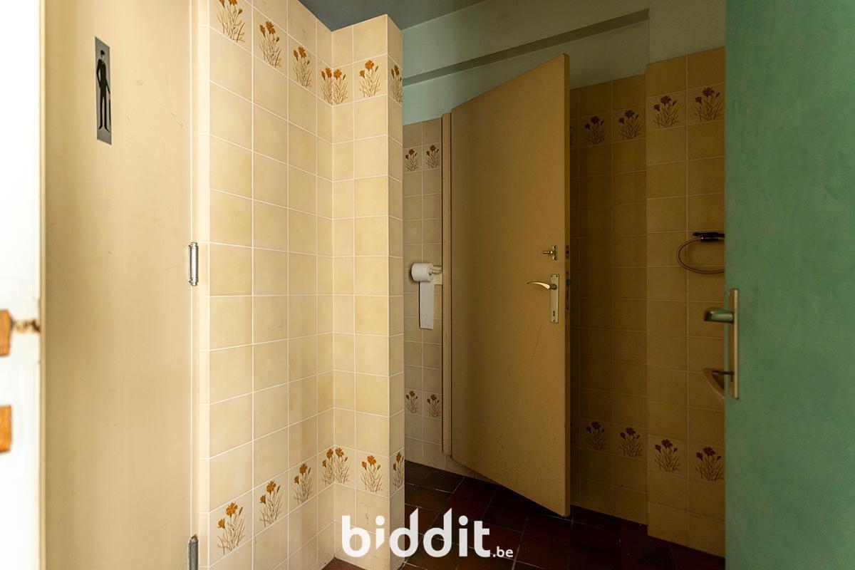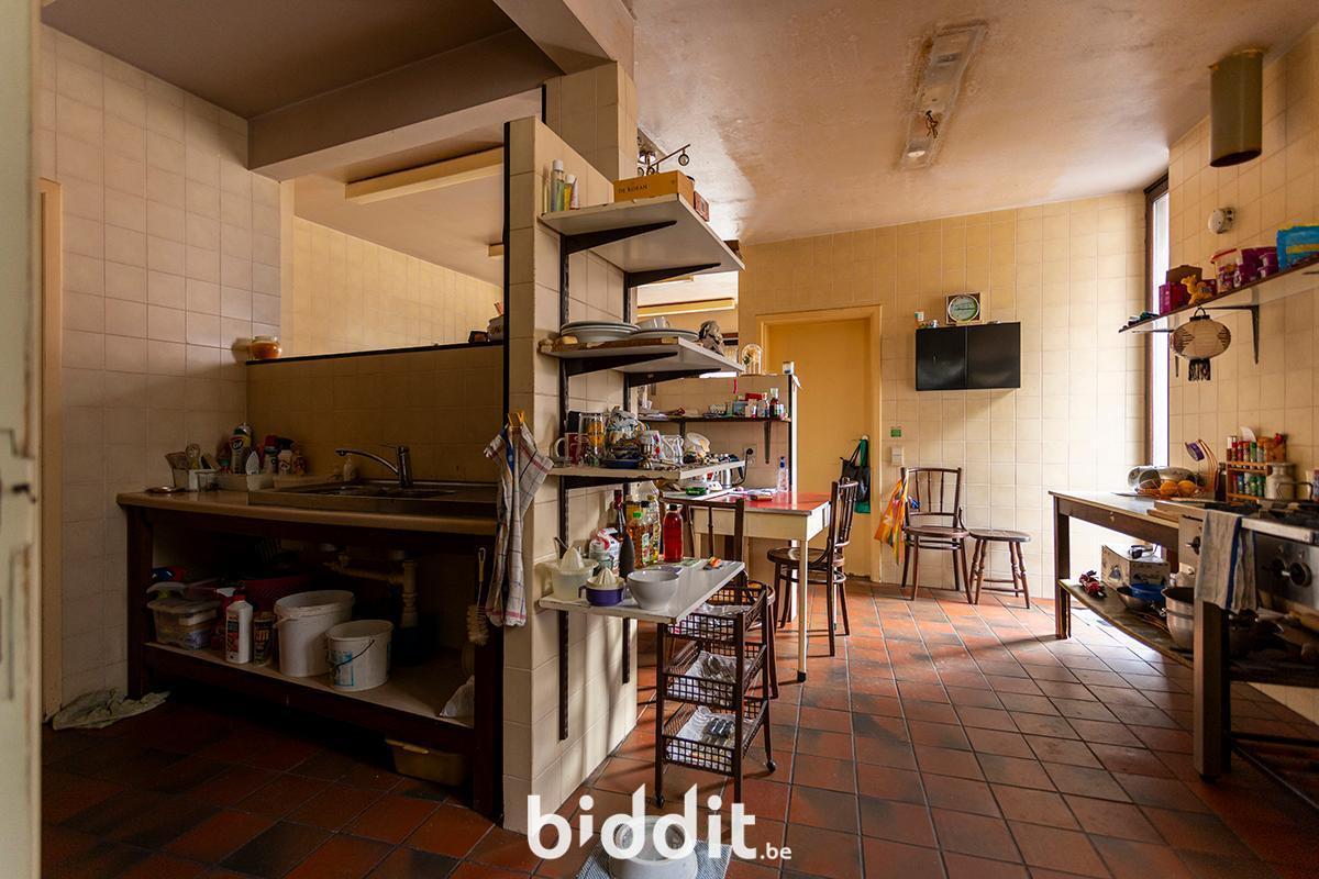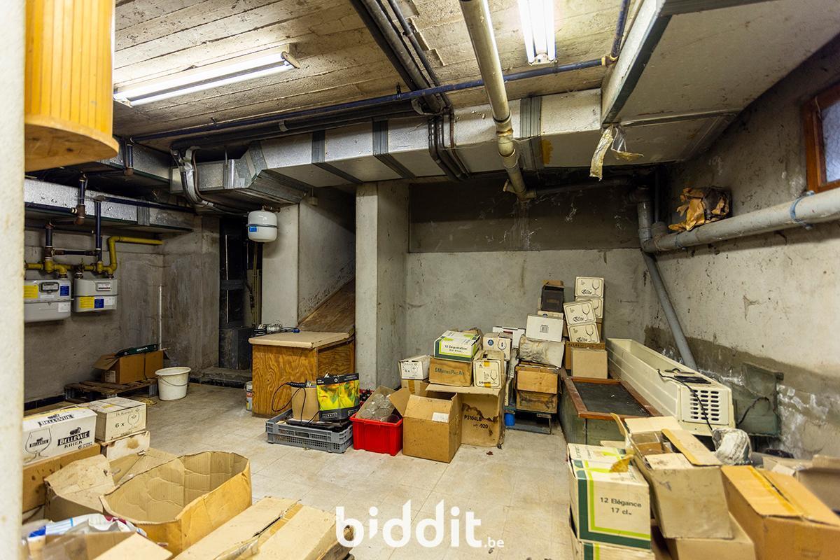 - Gelijkvloers: hal met toegang tot wc’s, grote polyvalente ruimte met ruime keuken en toegang tot grote kelder (vroeger restaurant);