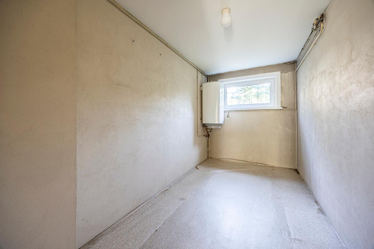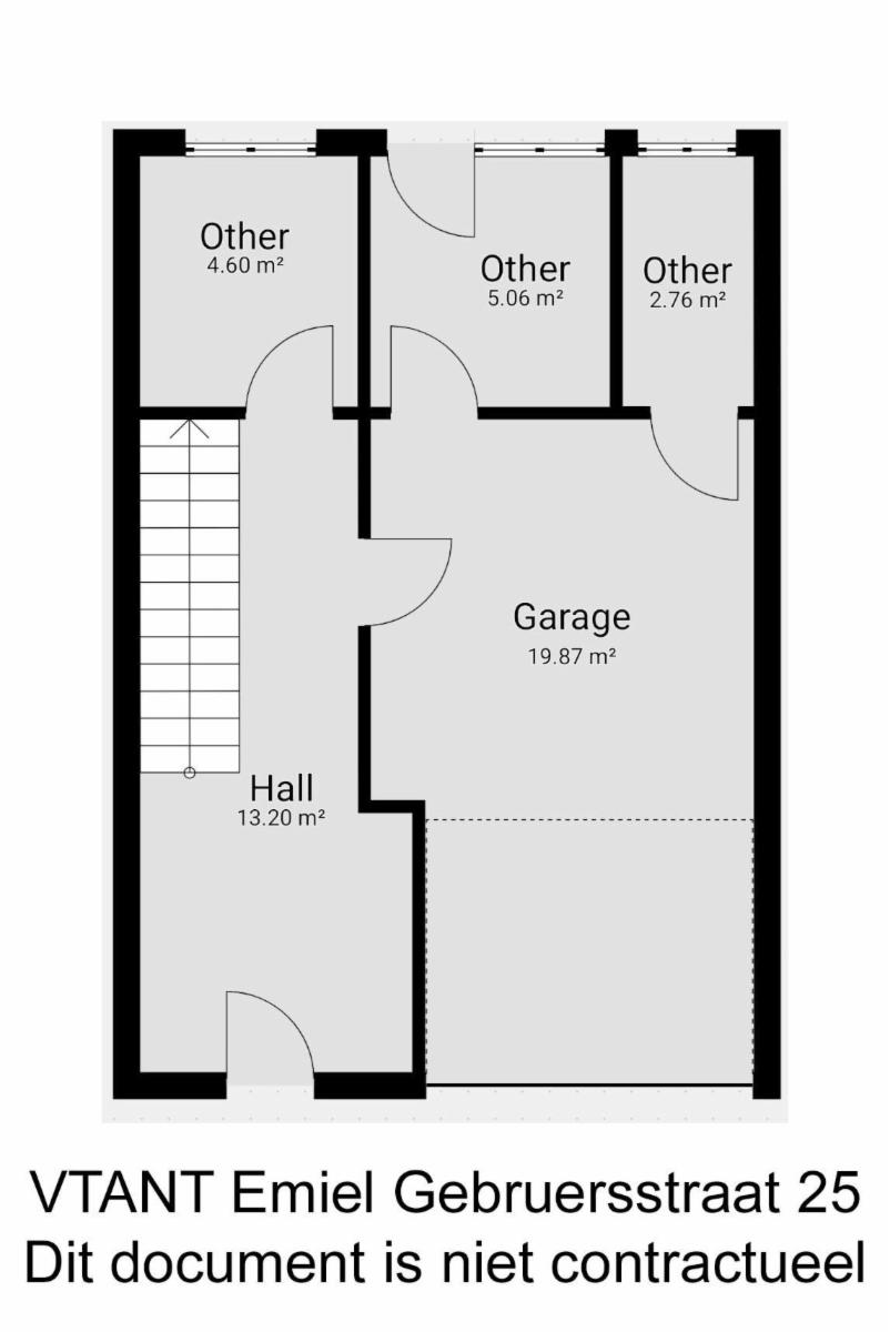 Op het gelijkvloers is er een inkomhal met doorgang naar de handige inpandige garage en 3 opslagruimten.