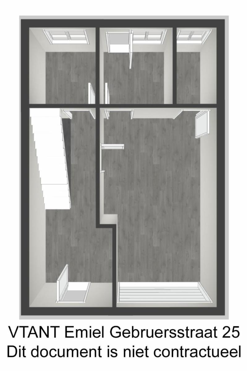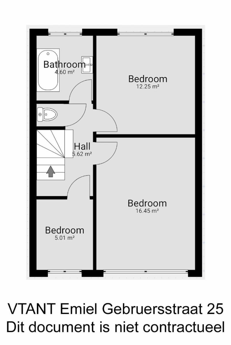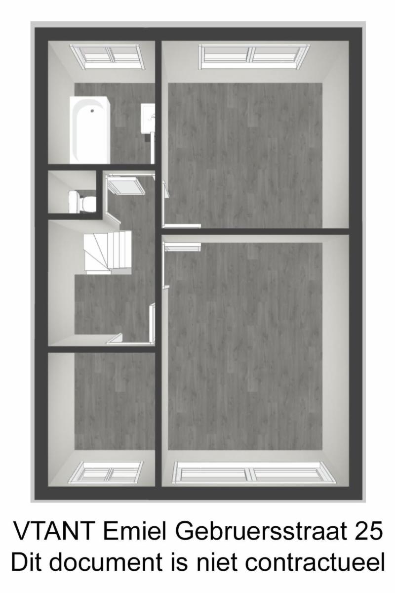 Op de 2e verdieping vindt u langs de voorzijde een ruime slaapkamer (16m²) en een 2e kamer met ingemaakte kasten (5m²), ideaal te gebruiken als dressing of extra slaapkamer. Langs de achterzijde (tuinzijde) is er een 3e slaapkamer (14m²). Aansluitend bevindt zich de badkamer met ligbad en lavabo (5m²) en nog een aparte wc.
