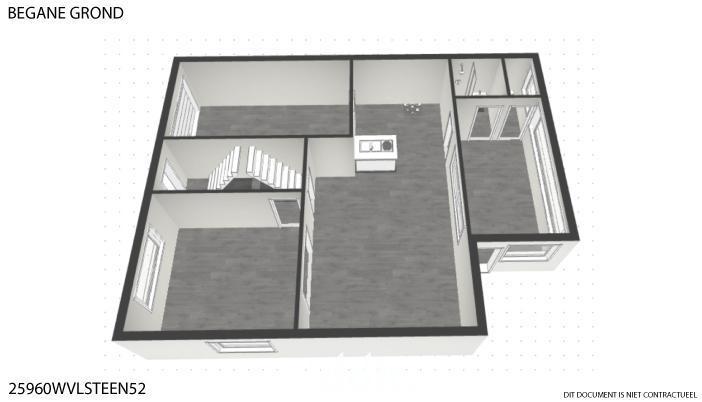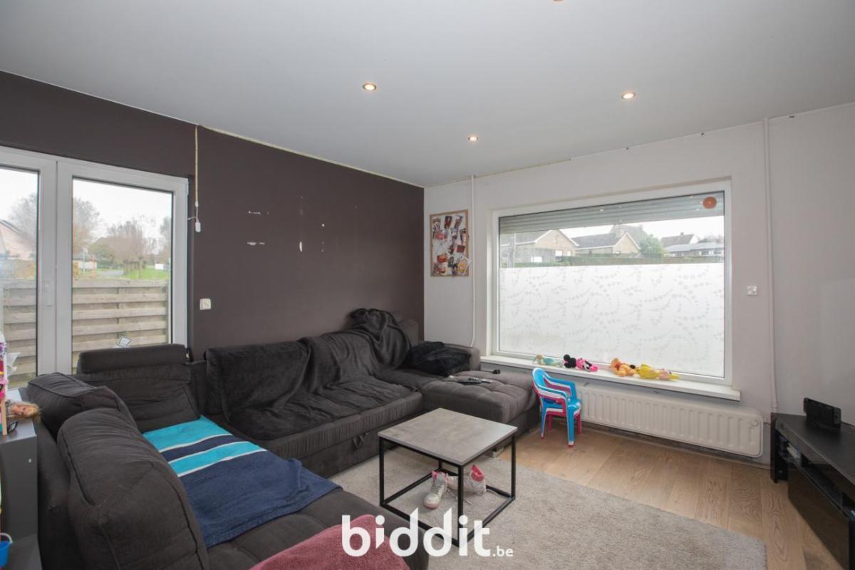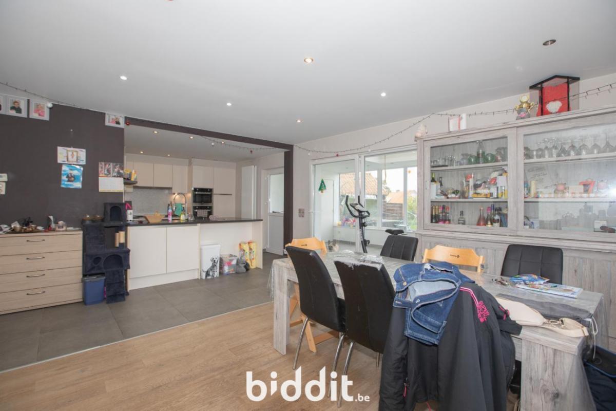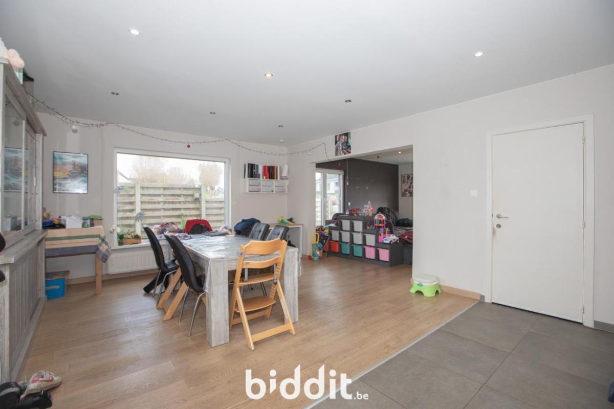 De indeling ziet er als volgt uit; gelijkvloerse verdieping: inkom, ruime leefruimte met aanpalende open keuken, via de keuken krijg je toegang tot de veranda met zicht op de grote tuin en de open velden. Op de begane verdieping vindt U een eerste badkamer met douche, enkele wastafel en een apart gastentoilet. De ruime garage beschikt over een elektrische poort en aansluiting voor de wasmachine.