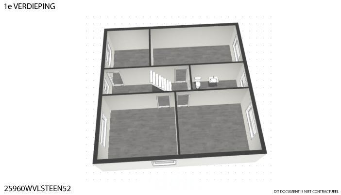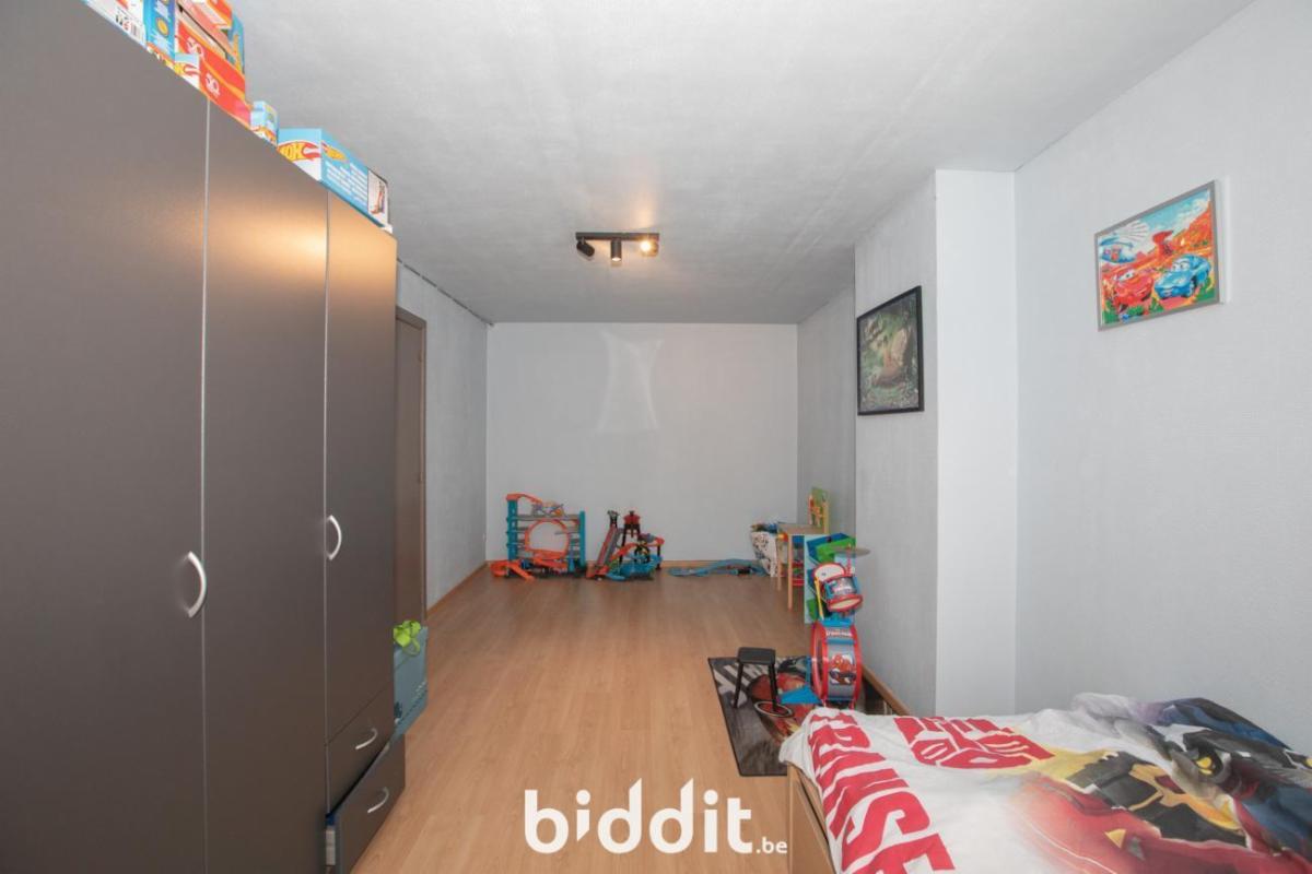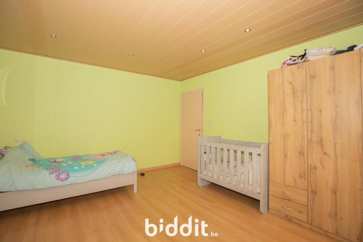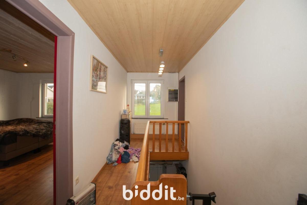 Eerste verdieping: nachthal, 4 slaapkamers (waarvan 3 grote (21m²- 20m² - 19m²) en 1 kleinere (10m²), badkamer met bad, wastafel en toilet. Naast de woning is er nog plaats om een wagen te plaatsen.