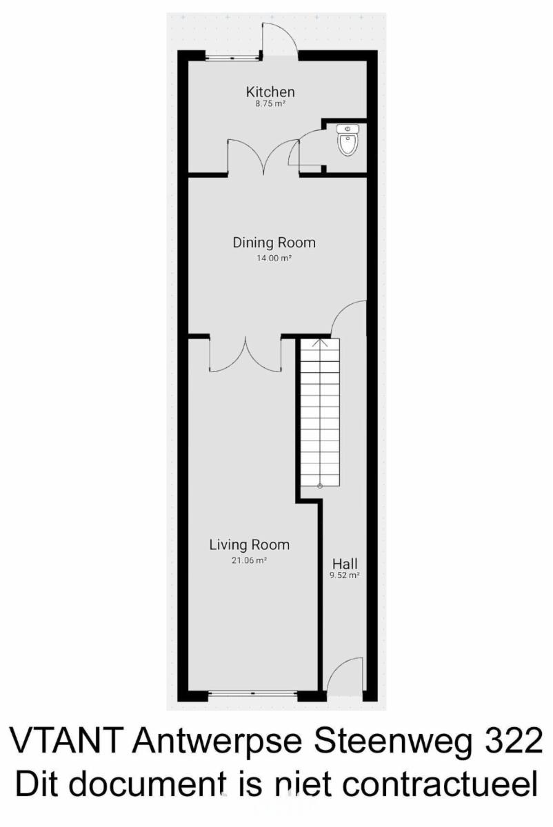 - Gelijkvloers: gang, zitplaats, wc, woonkamer, keuken, tuin;