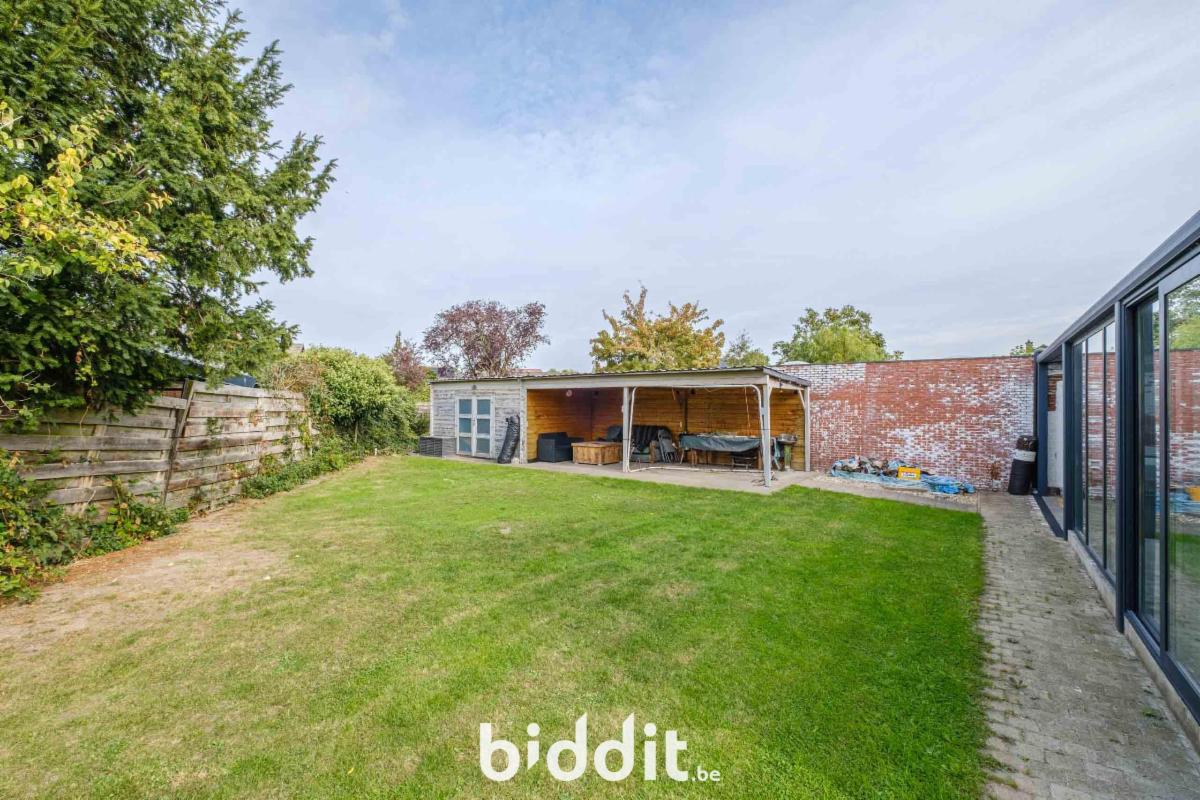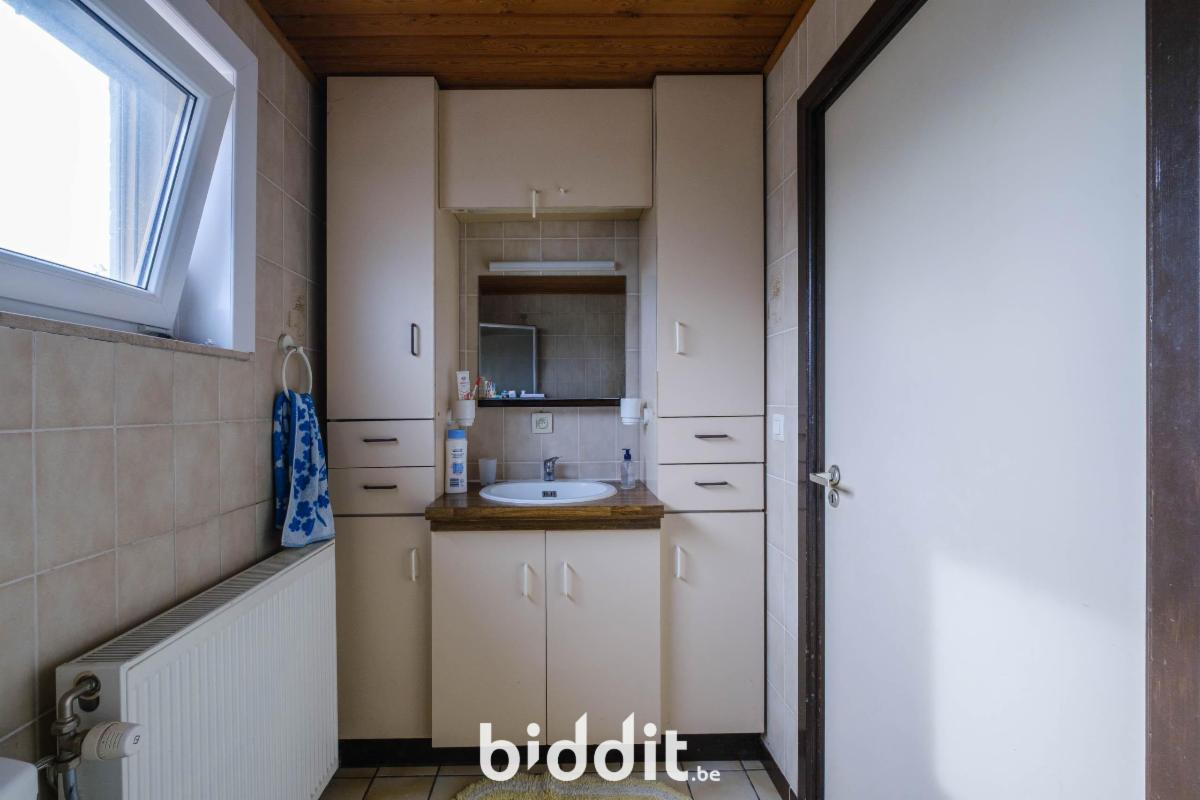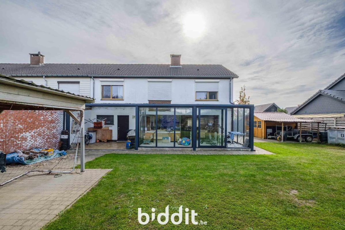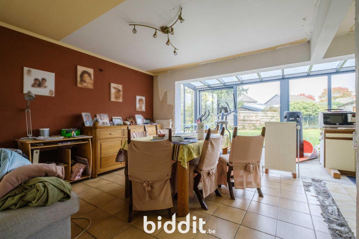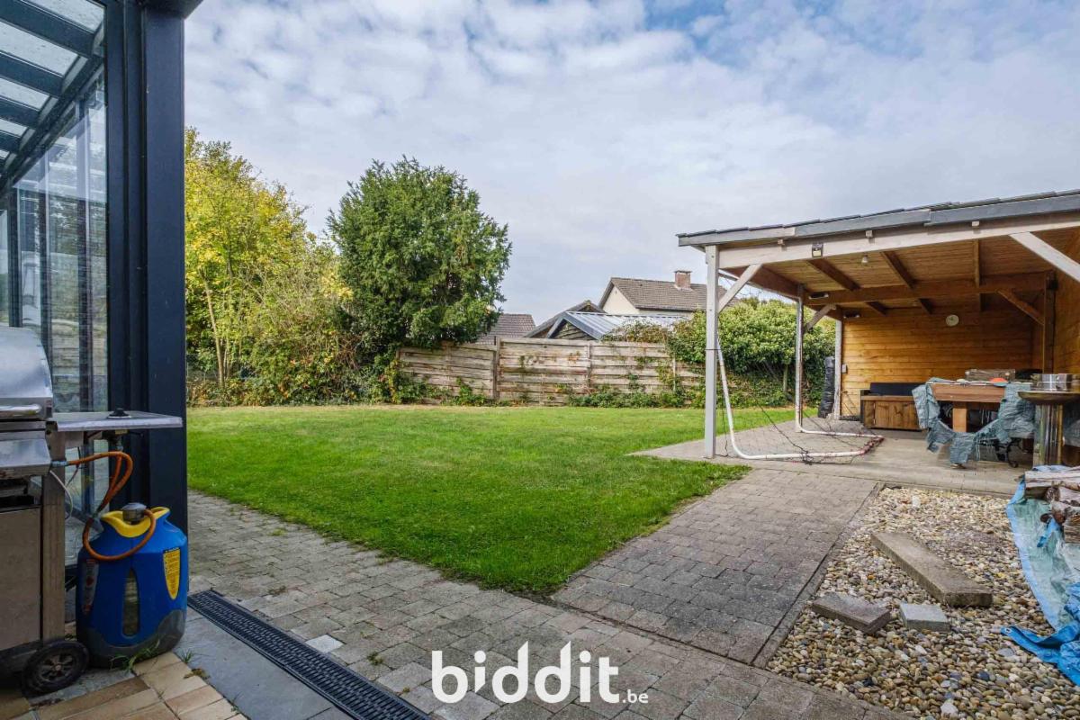- gelijkvloers: inkomhal met trap, toilet, ruime woonkamer, open keuken, veranda en garage;