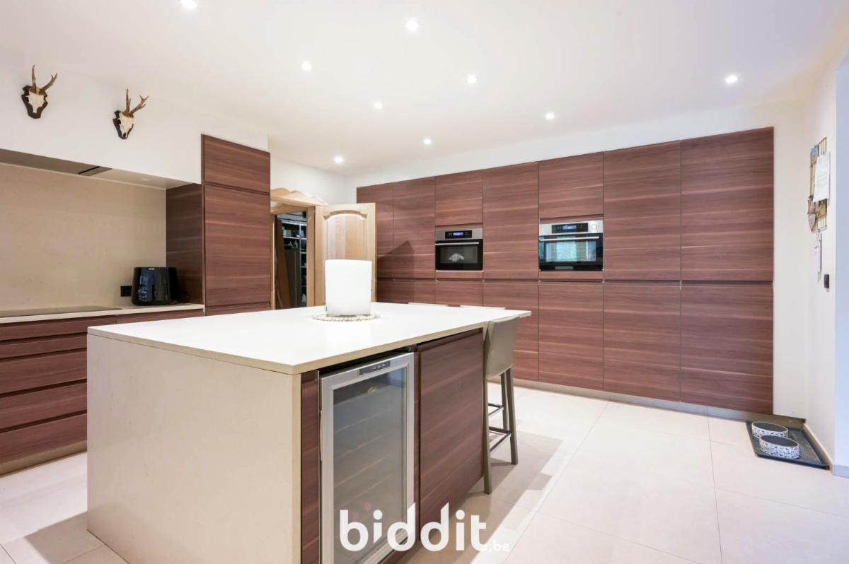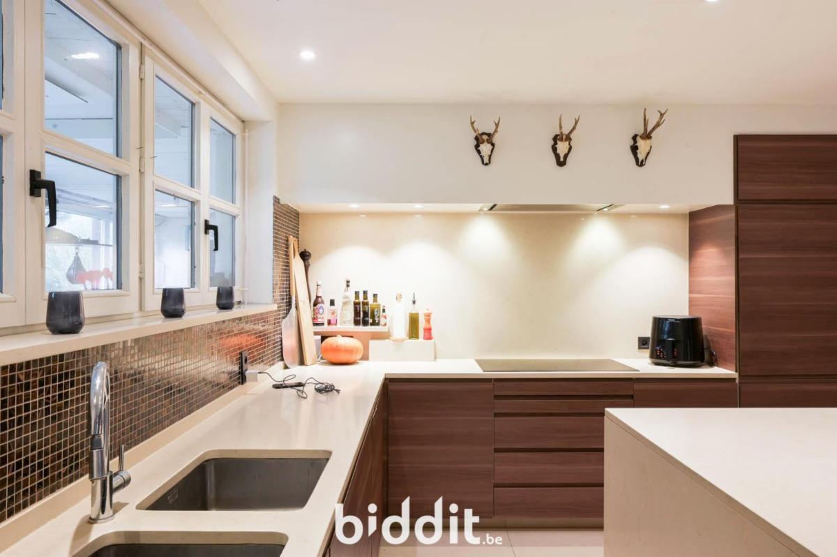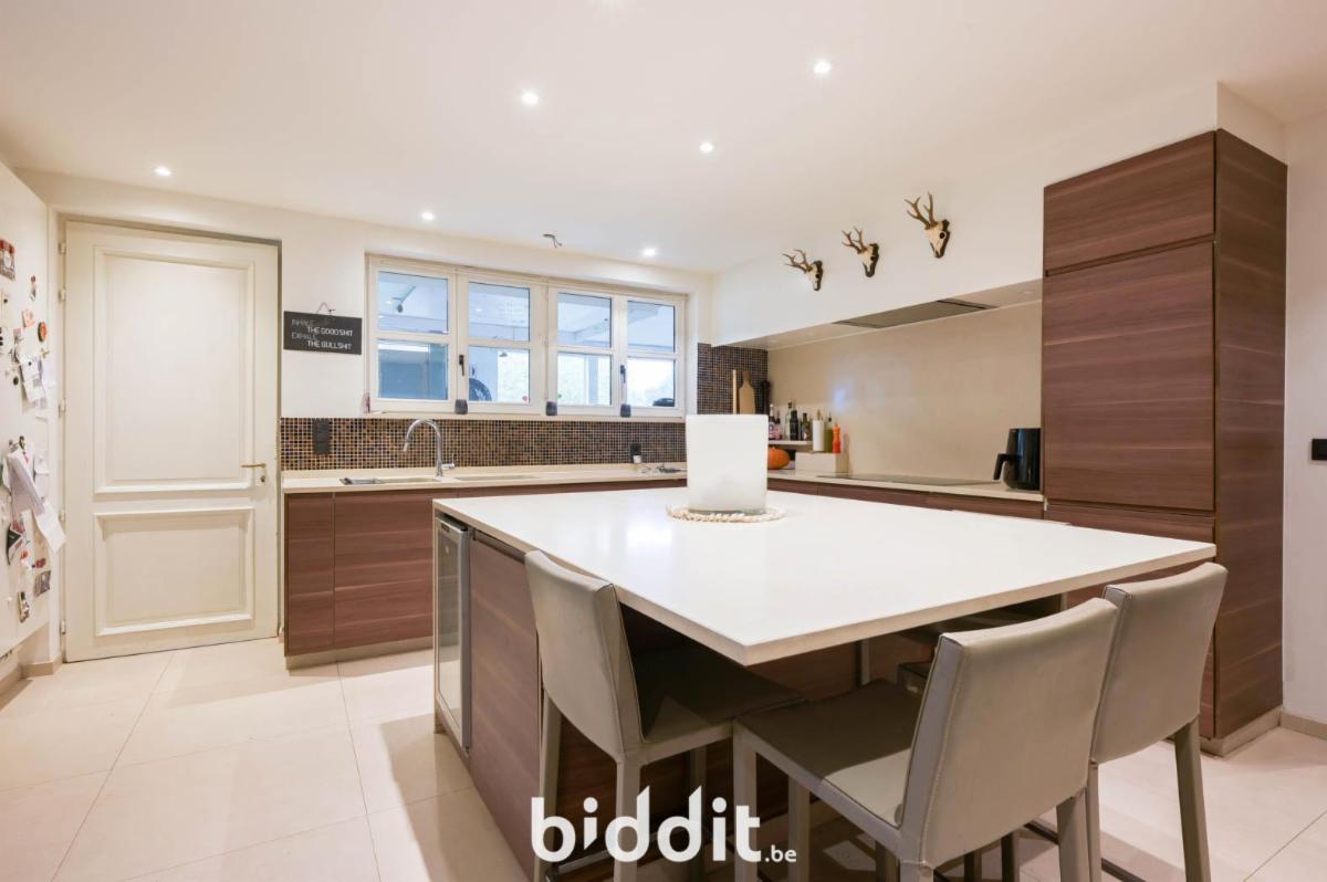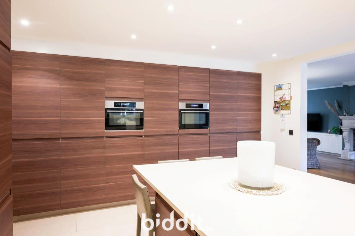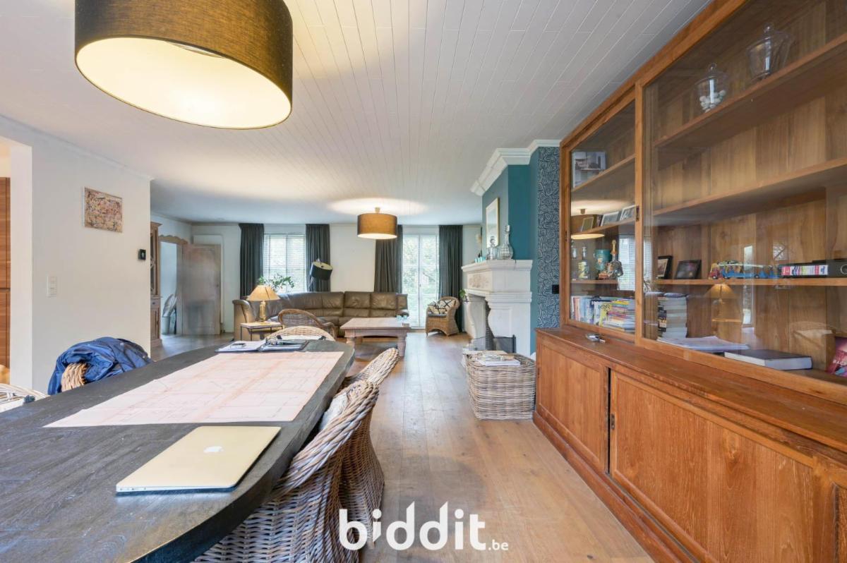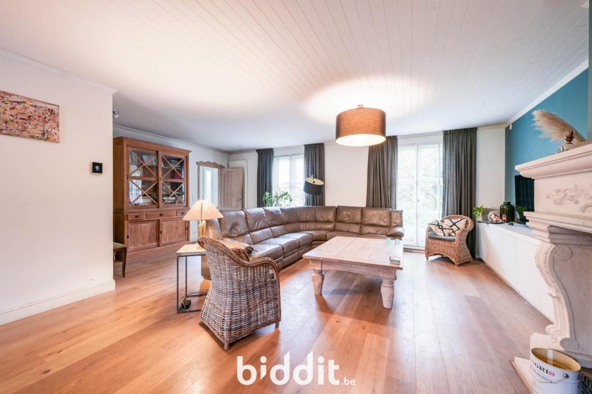 Via de inkomhal komt men in de lichtrijke leefruimte met eet- en zitplaats, die aansluit op de open ingerichte keuken. Dit zorgt voor een open en aangename leefomgeving. Op het gelijkvloers bevindt zich een apart toilet, een bergplaats, een inpandige garage en een veranda met zicht op de tuin. De tuin is ruim en biedt rust en privacy. Achteraan het perceel is er bovendien een vrijstaande garage met aansluitend een houten tuinhuis, ideaal als extra bergruimte of hobbyruimte.