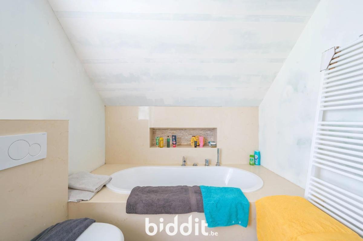 Op de eerste verdieping zijn 4 volwaardige slaapkamers en een badkamer uitgerust met een ligbad en een toilet. Daarnaast beschikt de woning over een zolderverdieping, bereikbaar via een schuiftrap, die kan dienen als bijkomende opslagruimte.