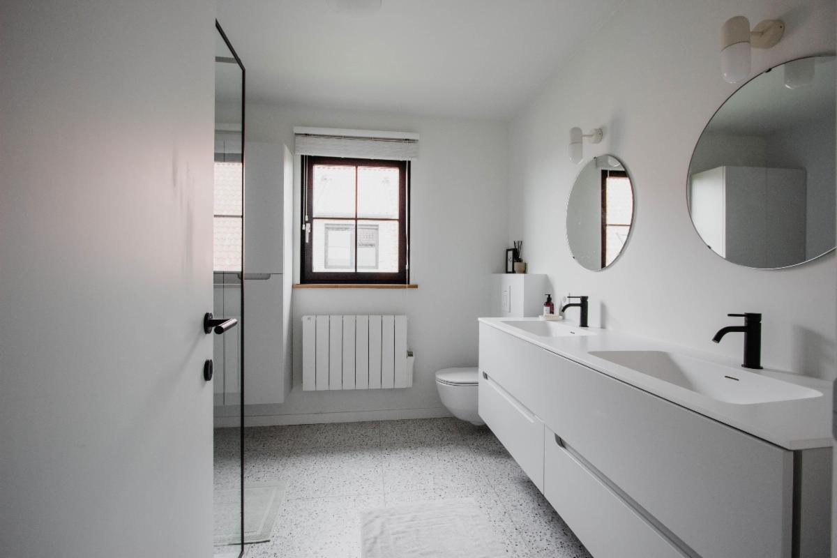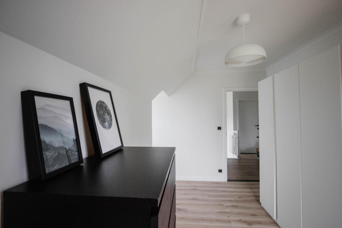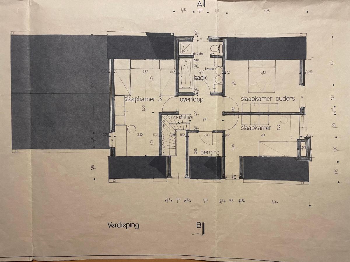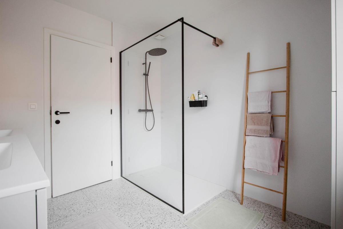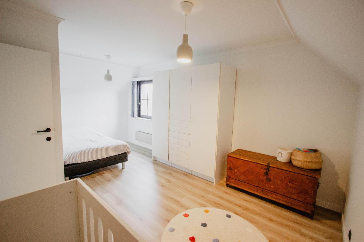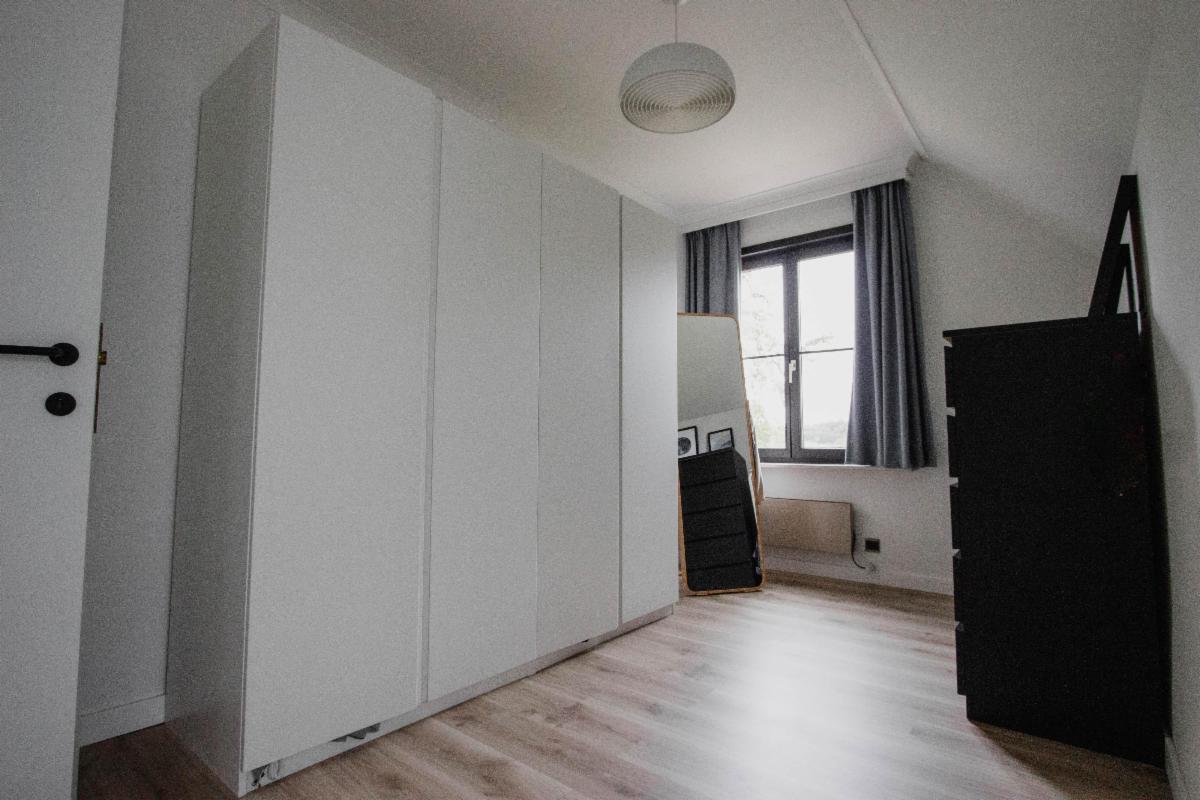 3 slaapkamers, berging, badkamer met dubbele lavabo, toilet en regendouche.