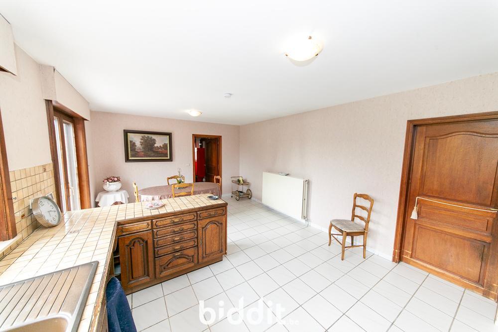 Ruime alleenstaande villa: leefruimte, op te frissen keuken, bureau, badkamer, 4 slaapkamers.