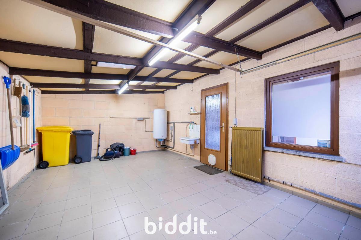 - gelijkvloers: inkomhal, leefruimte, keuken, badkamer met WC, veranda, berging, berging/slaapkamer, garage en tuin,