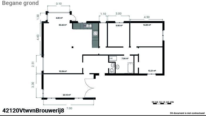 Indeling: inkom, wc, open leefruimte met keuken, 3 slaapkamers, badkamer met bad & douche.