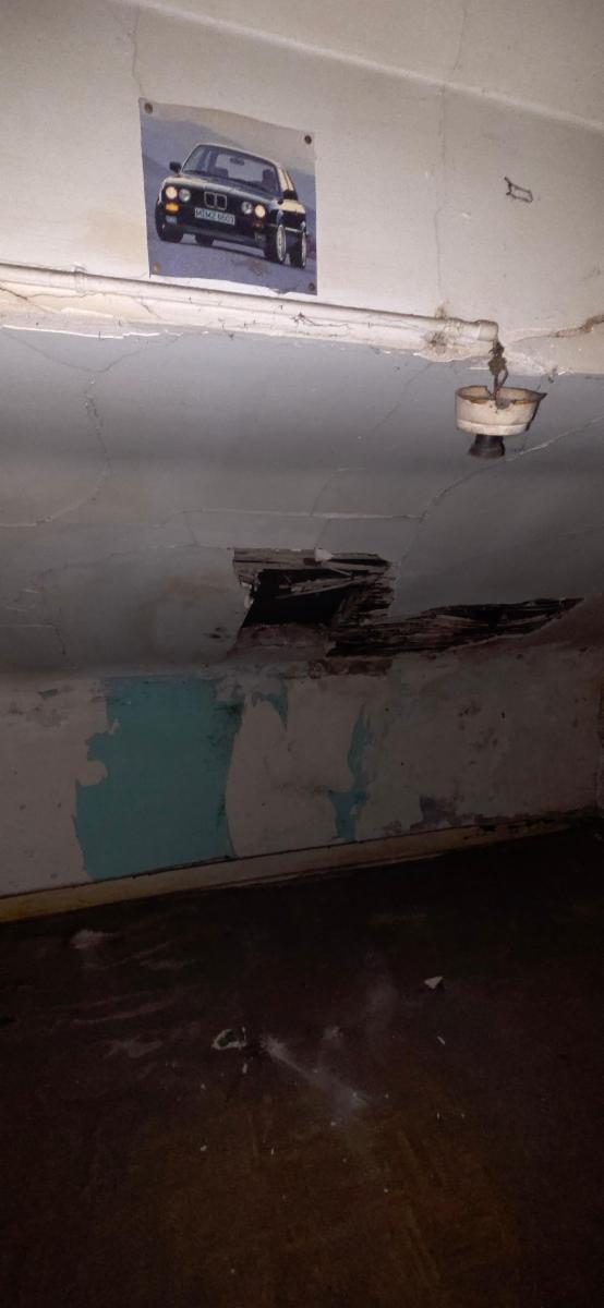 REZ-DE-CHAUSSEE sur charpente béton – totalement carrelée: une salle à manger de 15,25 m² (3,88*3,93) – un salon de 12,07 m² (4,01*3,01) – une cuisine non équipée de 14,39 m² ((4,68*1,86)+(2,45*2,32)) avec chauffe-eau au gaz de ville – une salle de bain, composée d’anciens sanitaires, de 4,45 m² (2,20*2,25)