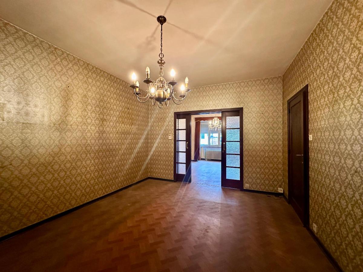 Le bien est composé comme suit : Hall d'entrée, salon avec loggia, salle à manger, cuisine (à installer) donnant accès au jardinet arrière orienté plein Sud. À l'étage : hall de nuit, chambre parentale avec balcon (16 m²), seconde chambre (14 m²), bureau, cagibi et salle de bains (évier, baignoire, WC). Au sous-sol : hall de cave, garage pouvant accueillir un véhicule, buanderie/chaufferie, ainsi que 2 petites caves de rangement.