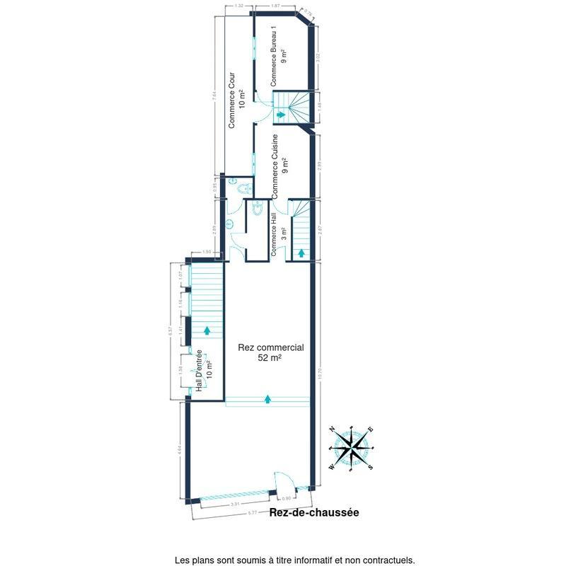Au rez-de-chaussée : Espace commercial lumineux, idéal pour boutique ou bureau, doté d’un coin toilette, d’un espace de stockage et d’une petite cour privative.