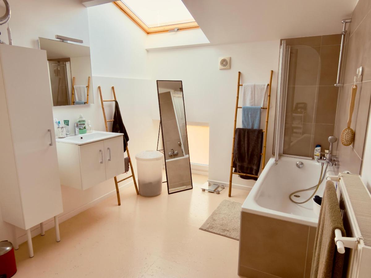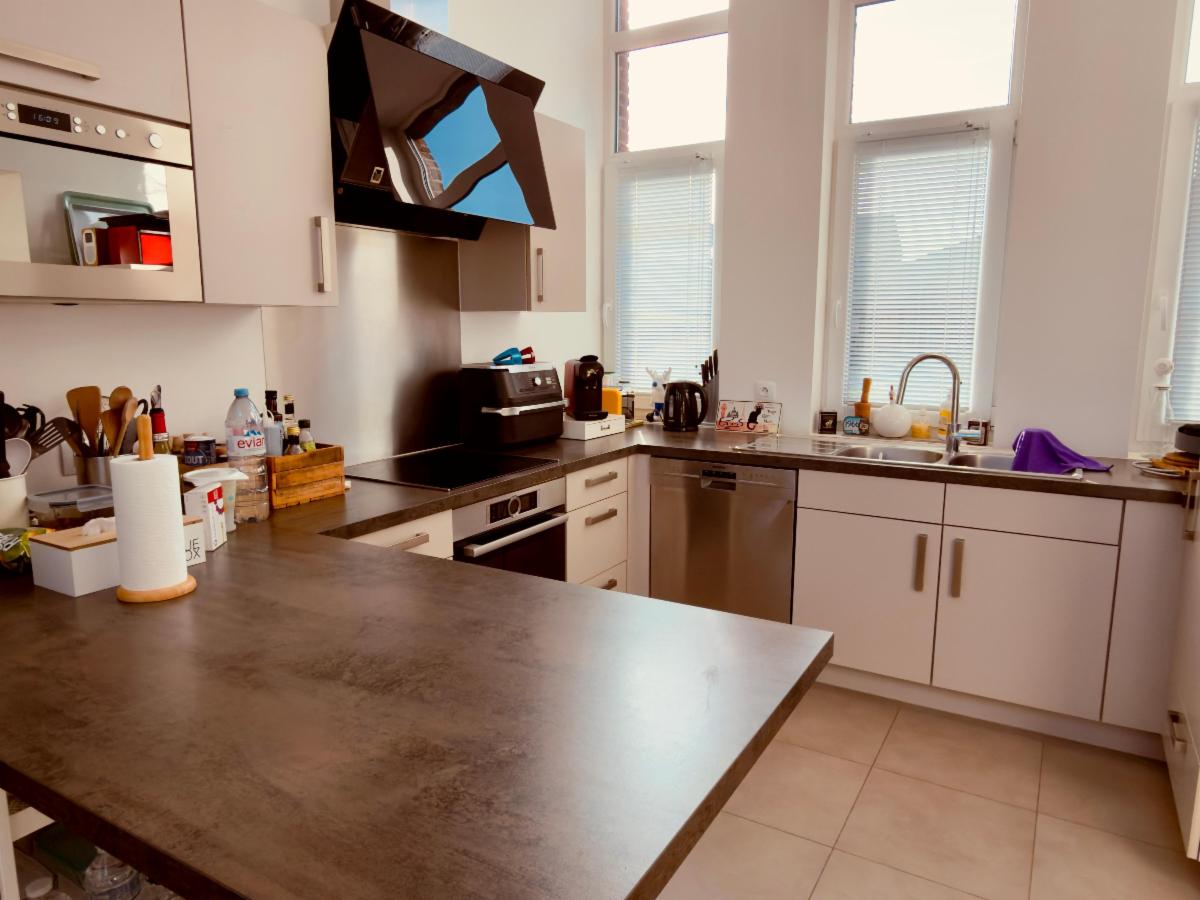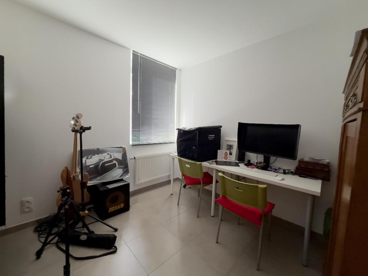 Le premier étage, correspondant à l’entrée principale de la maison, s’ouvre sur un hall d’accueil menant à un bureau (idéal pour le télétravail), une penderie, un WC séparé avec lave-mains et un hall de circulation. Vous y découvrirez également un spacieux living d’environ 35 m², baigné de lumière, ainsi qu’une cuisine équipée d’environ 12 m² dotée d’électroménagers récents.
