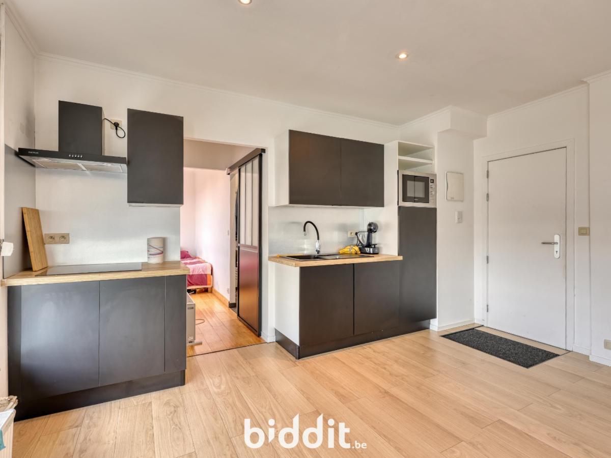De studio ligt aan de kant van het park en bestaat uit een woonkamer met keukenhoek en toegang tot het terras, een slaapkamer, een kast, 1 badkamer met toilet, kelder nr 99 op de 2e kelderverdieping. N.g.k.i. 803€. Verhuurd. Woonhuis met residentieel karakter. EPC : G/406. Contr. elektr. niet conform. Bezoeken: (vanaf 20/9 t.e.m. 15/10) : elke zaterdag van 10-12u en elke woensdag van 17-19u. De bezoeken worden georganiseerd door Smartvisite op afspraak op nr 02/880 21 26 (www.smartvisite.be)