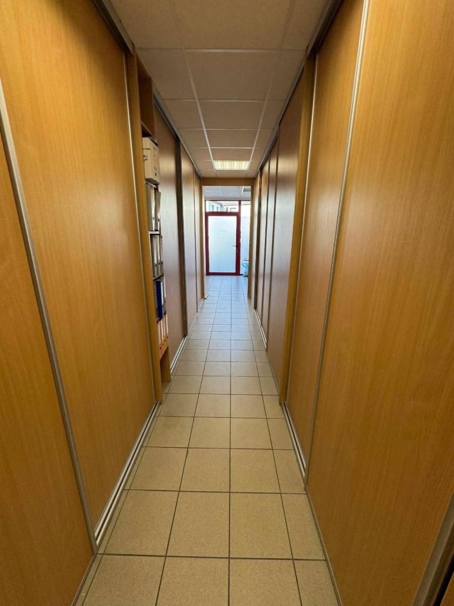 Un hall d'entrée, différents espaces bureaux - salle de réunion, un coin cuisine, deux WC.