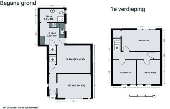 Indeling gelijkvloers: inkom hal, trap, woonkamer, keuken, badkamer, slaapkamer en CV-ruimte