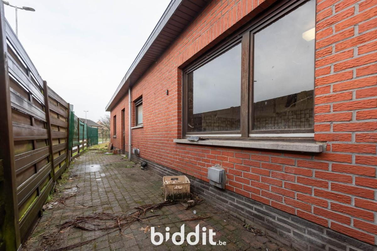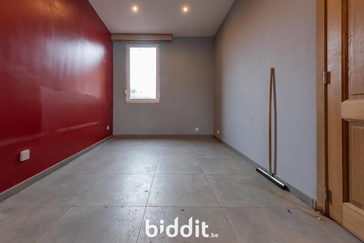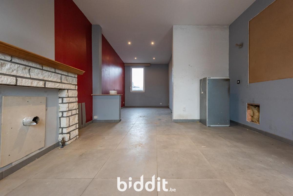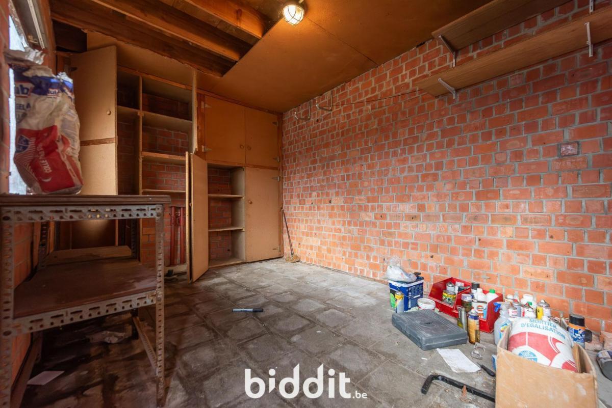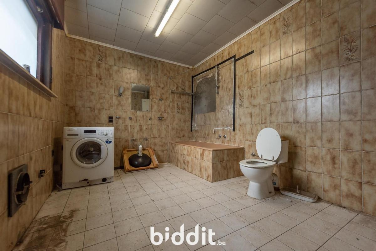 Op het gelijkvloers: inkomhal, niet-ingerichte keuken, woonkamer, eetplaats, badkamer, grote berging;