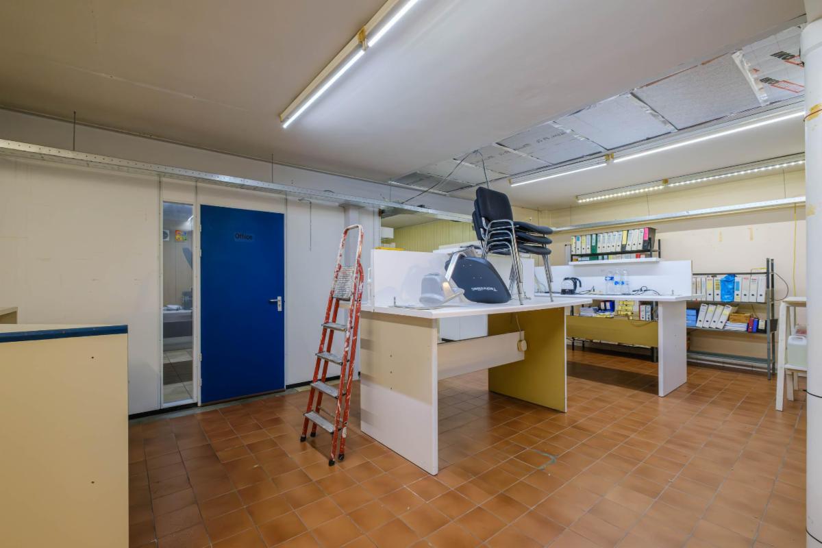 Voorzien van sanitair, burelen en een toonzaalruimte.