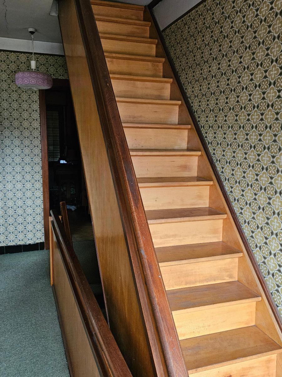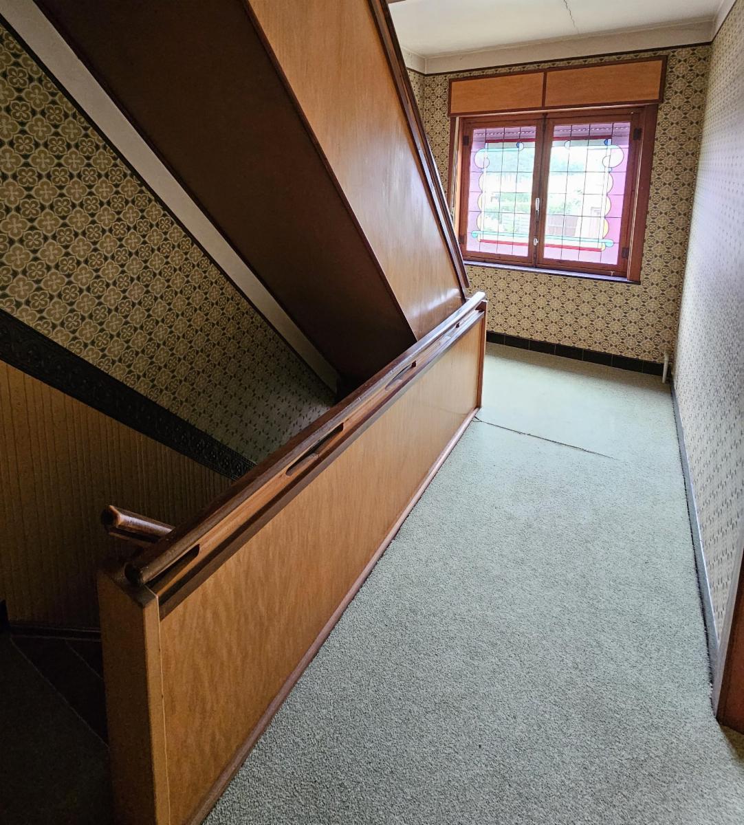 Deze woning bevindt zich op een perceel van 5a 75ca en bestaat op de gelijkvloerse verdieping uit een inkomhal, woonkamer, keuken, badkamer (bad, lavabo en wc) en een veranda. Op de eerste verdieping bevinden zich drie slaapkamers. De woning beschikt daarnaast ook over een droge ondergrondse kelder, een zolder die te bereiken is met een vaste trap waardoor er gemakkelijk uitbreidingsmogelijkheden zijn en een losstaande garage.
