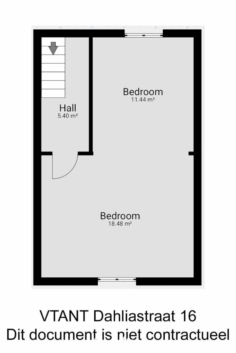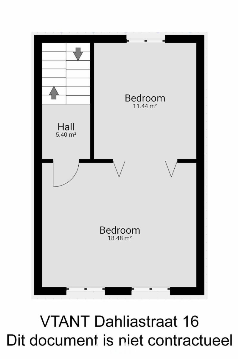 - Eerste verdieping: Traphall & 2 ruime slaapkamers.