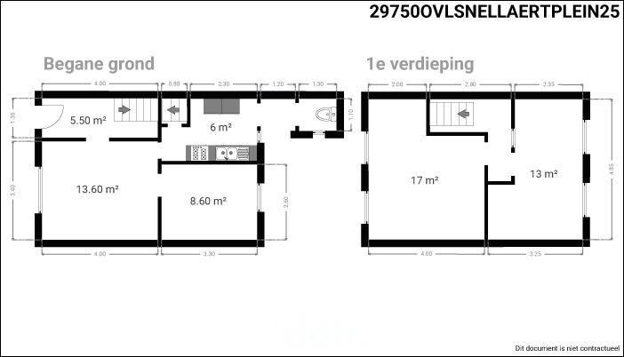 - gelijkvloers: inkom, leefruimte, keuken, badkamer, w.c., buitenberging en koer;