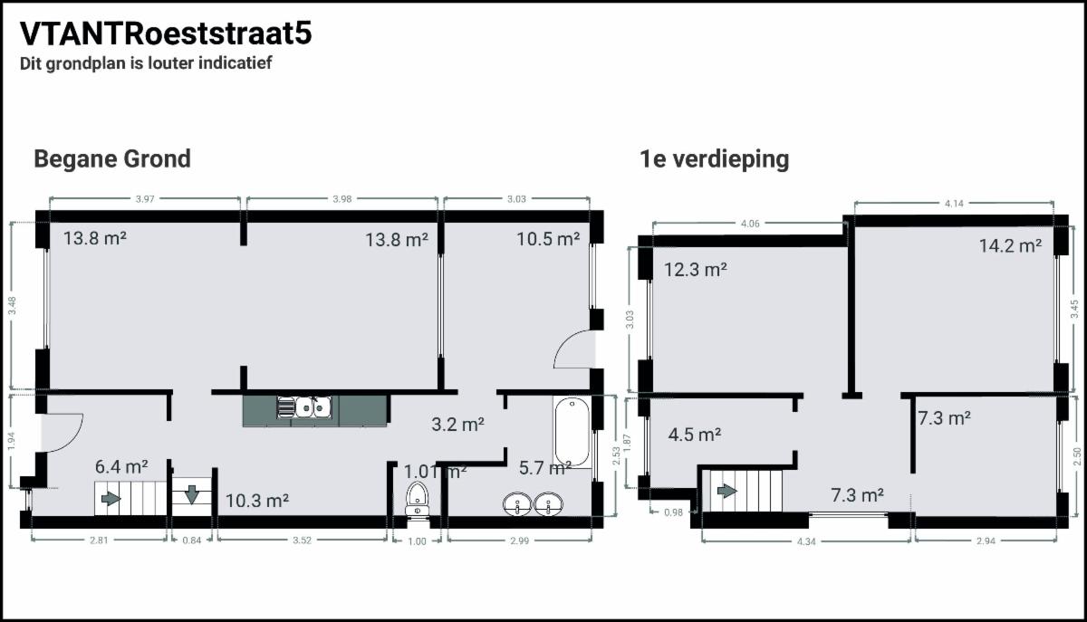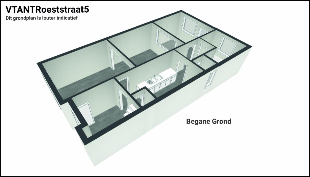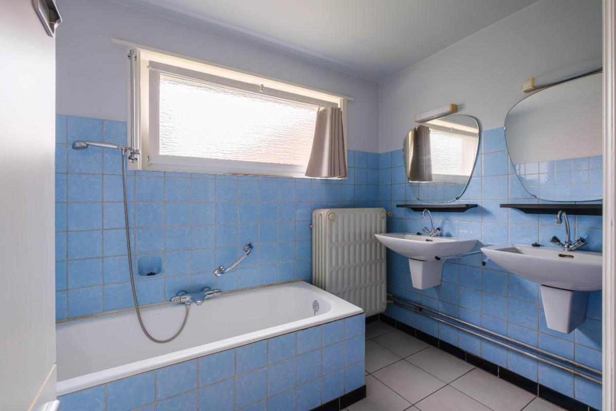 - gelijkvloers: inkom, woon- en eetkamer, keuken, apart toilet, badkamer met bad en dubbele lavabo, wasplaats;