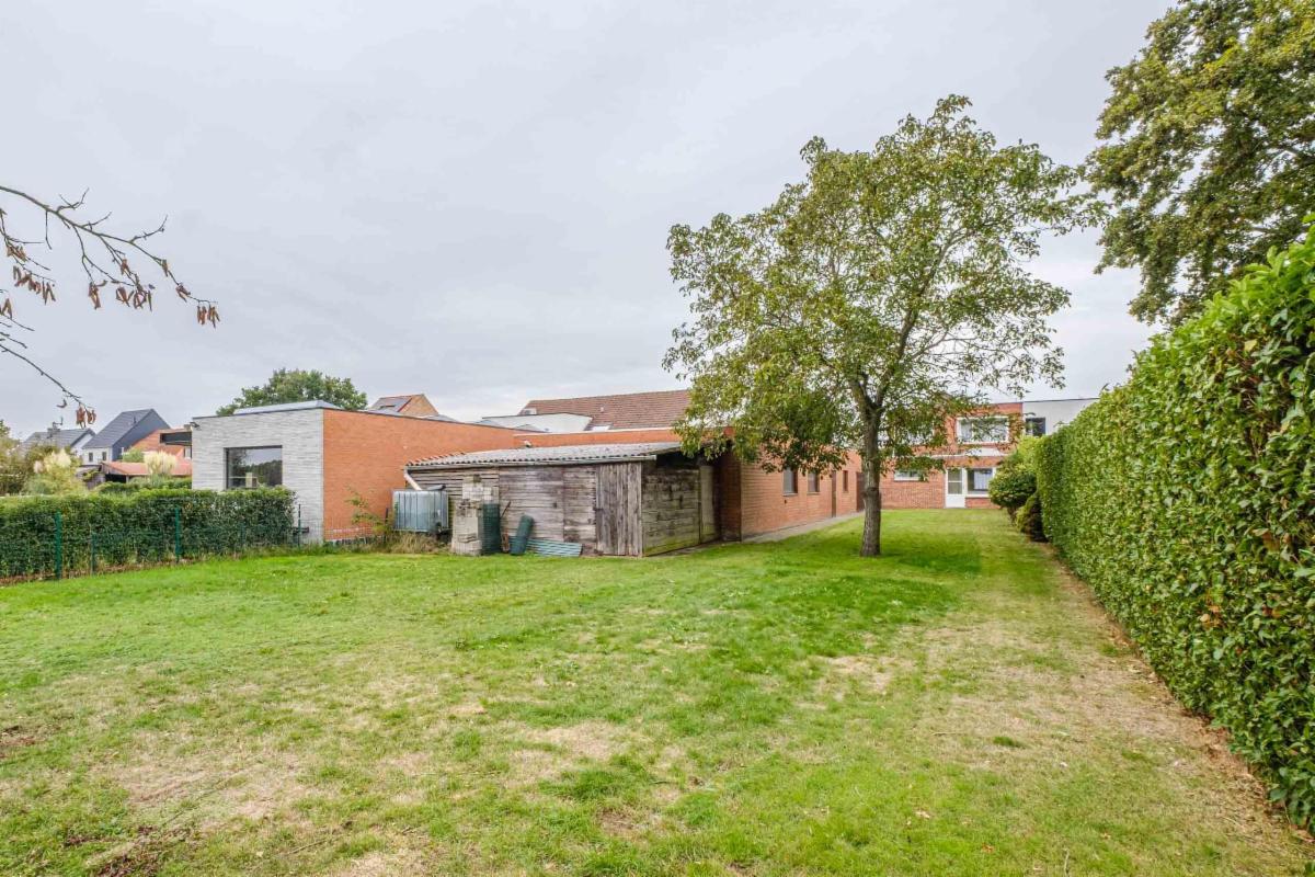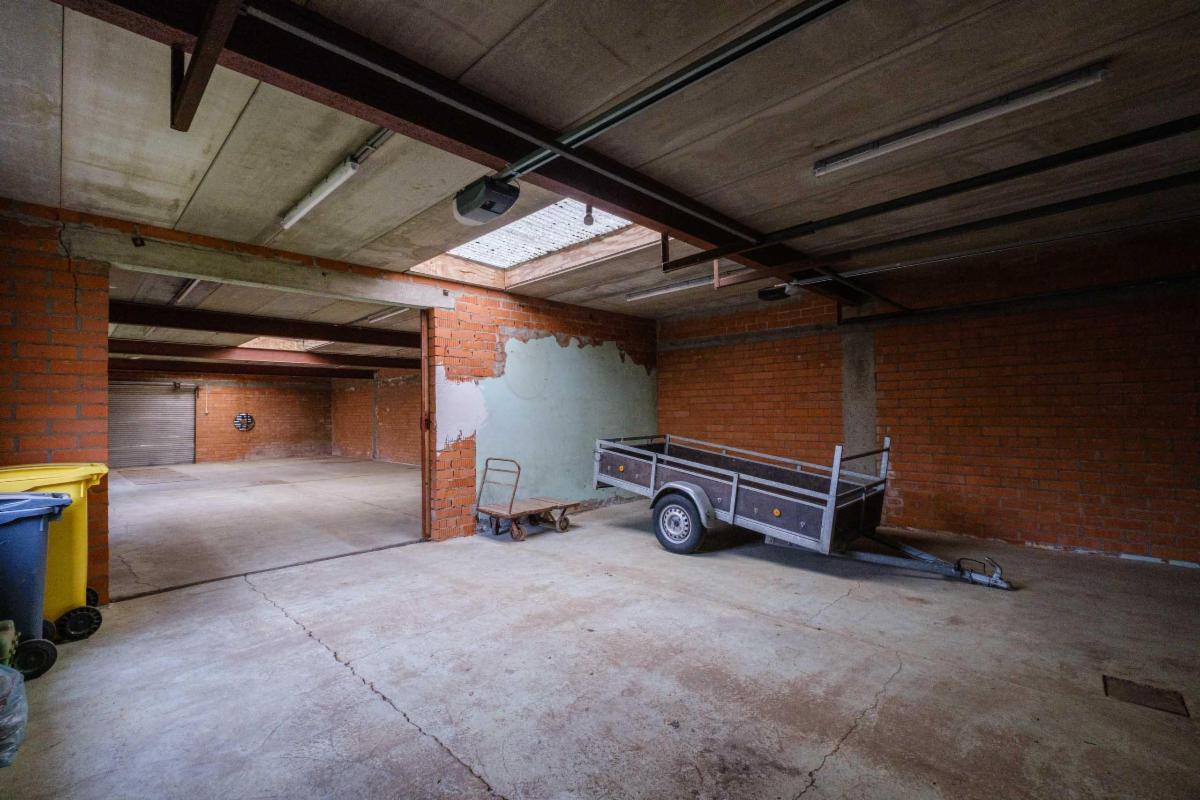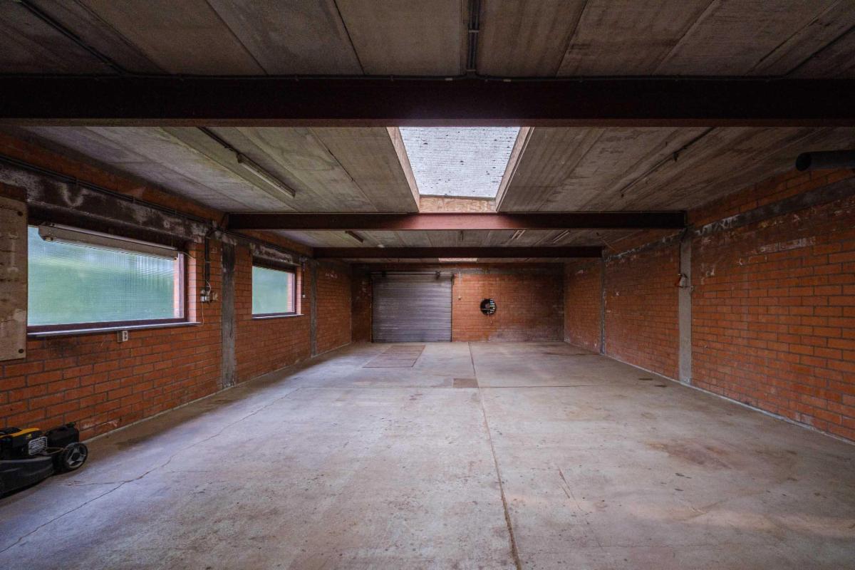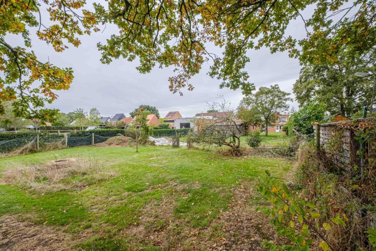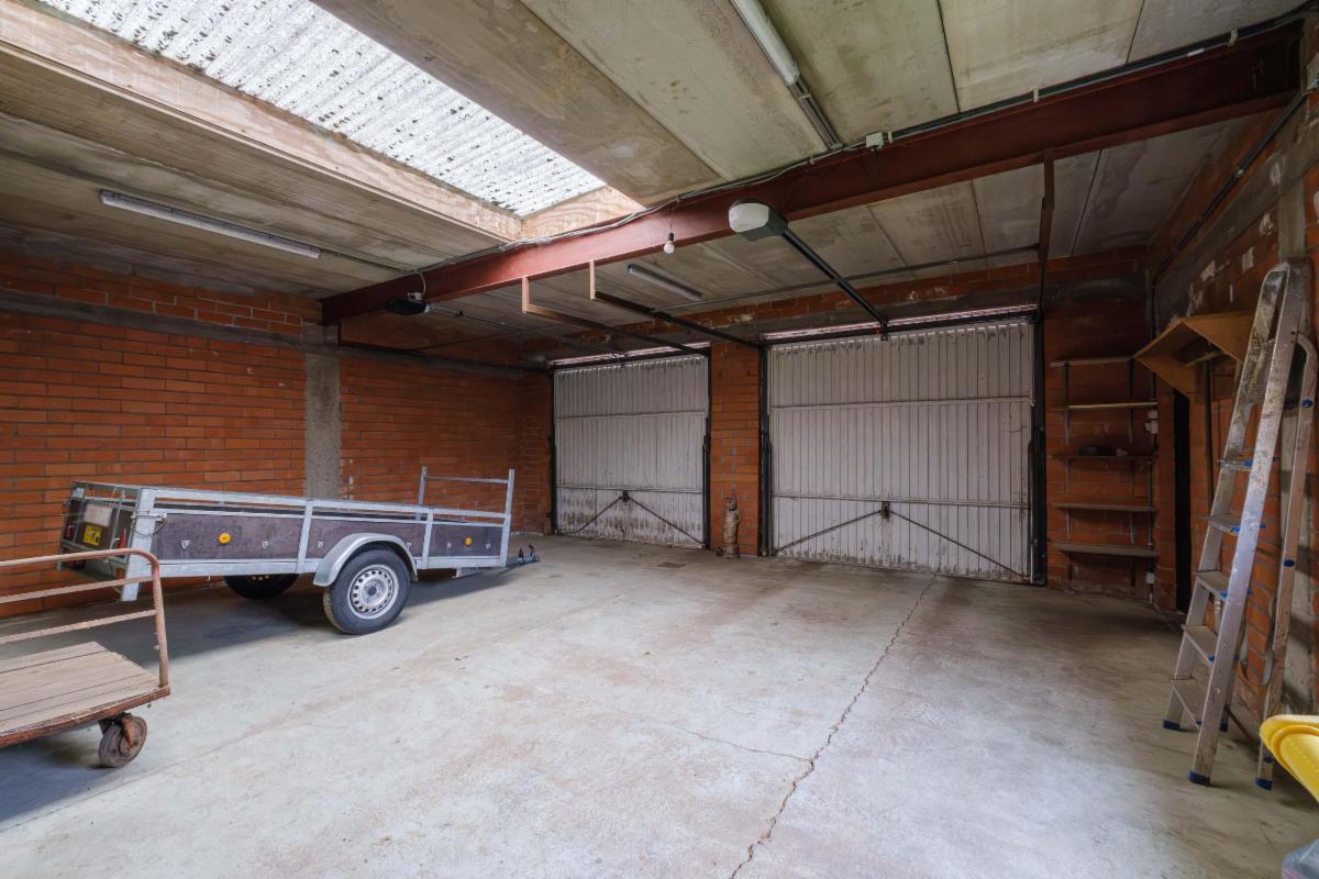 Grote tuin met dubbele garage en grote opslagplaats/werkhuis.