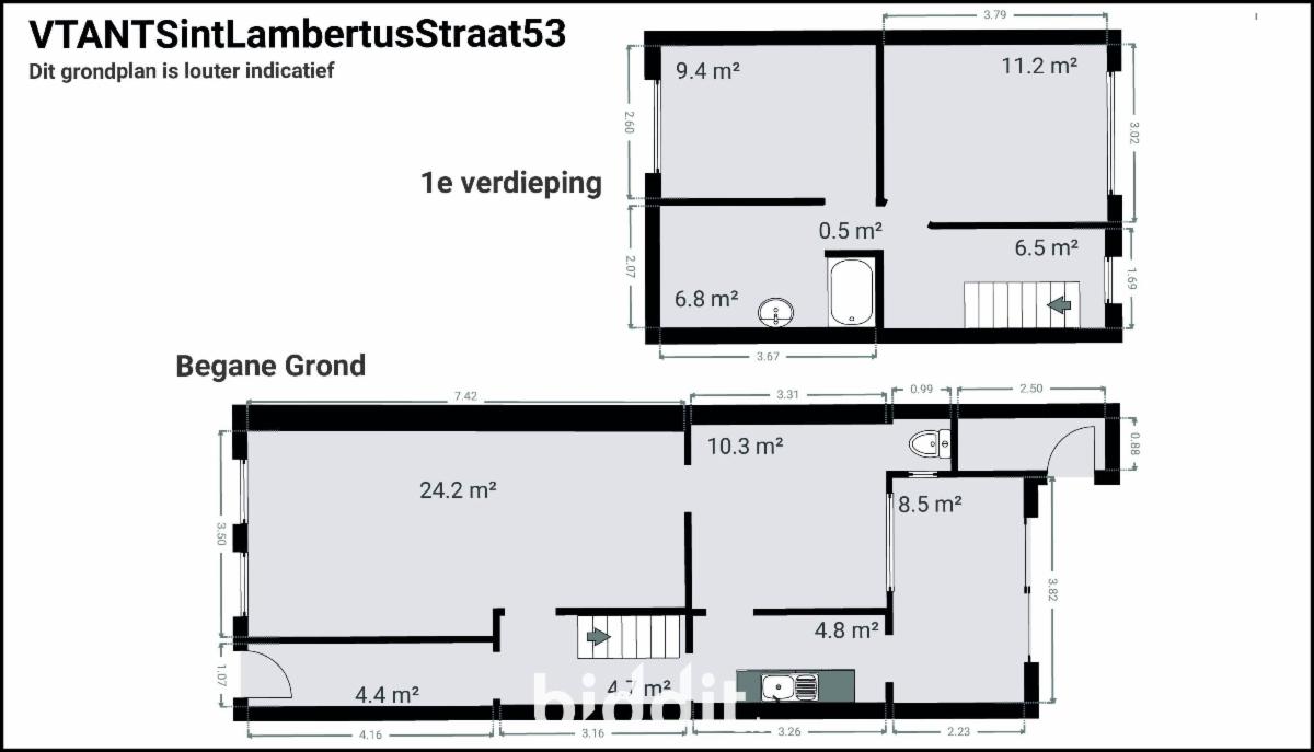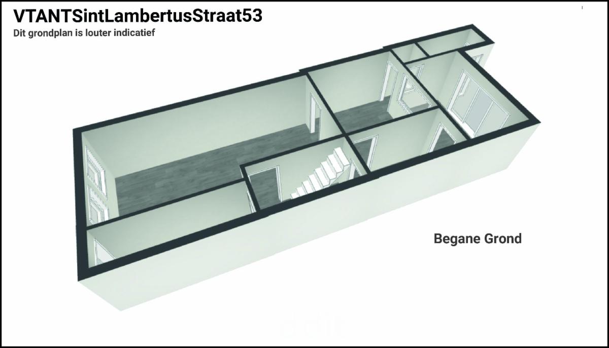 - gelijkvloers: inkomhal, woonkamer, eetkamer, keuken, wc, veranda en stadstuin;