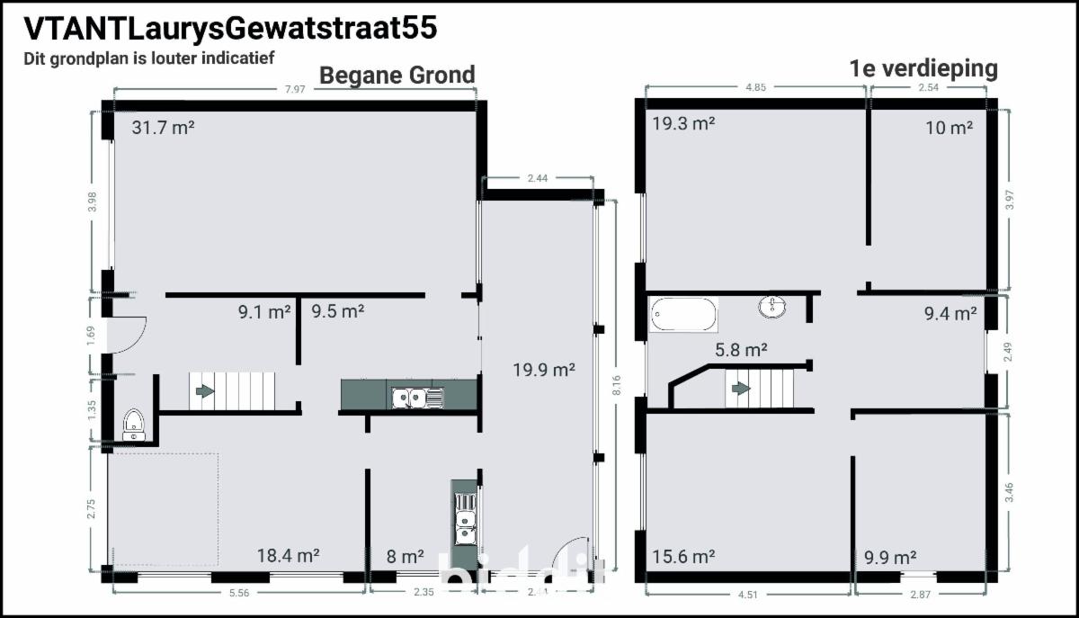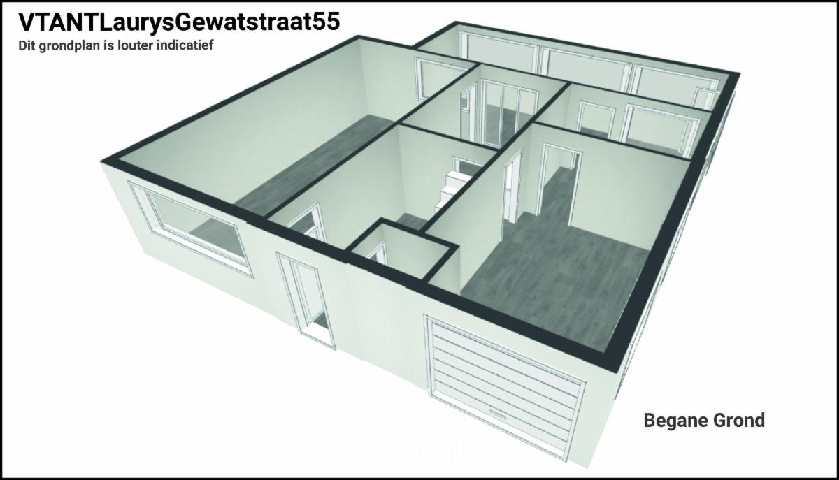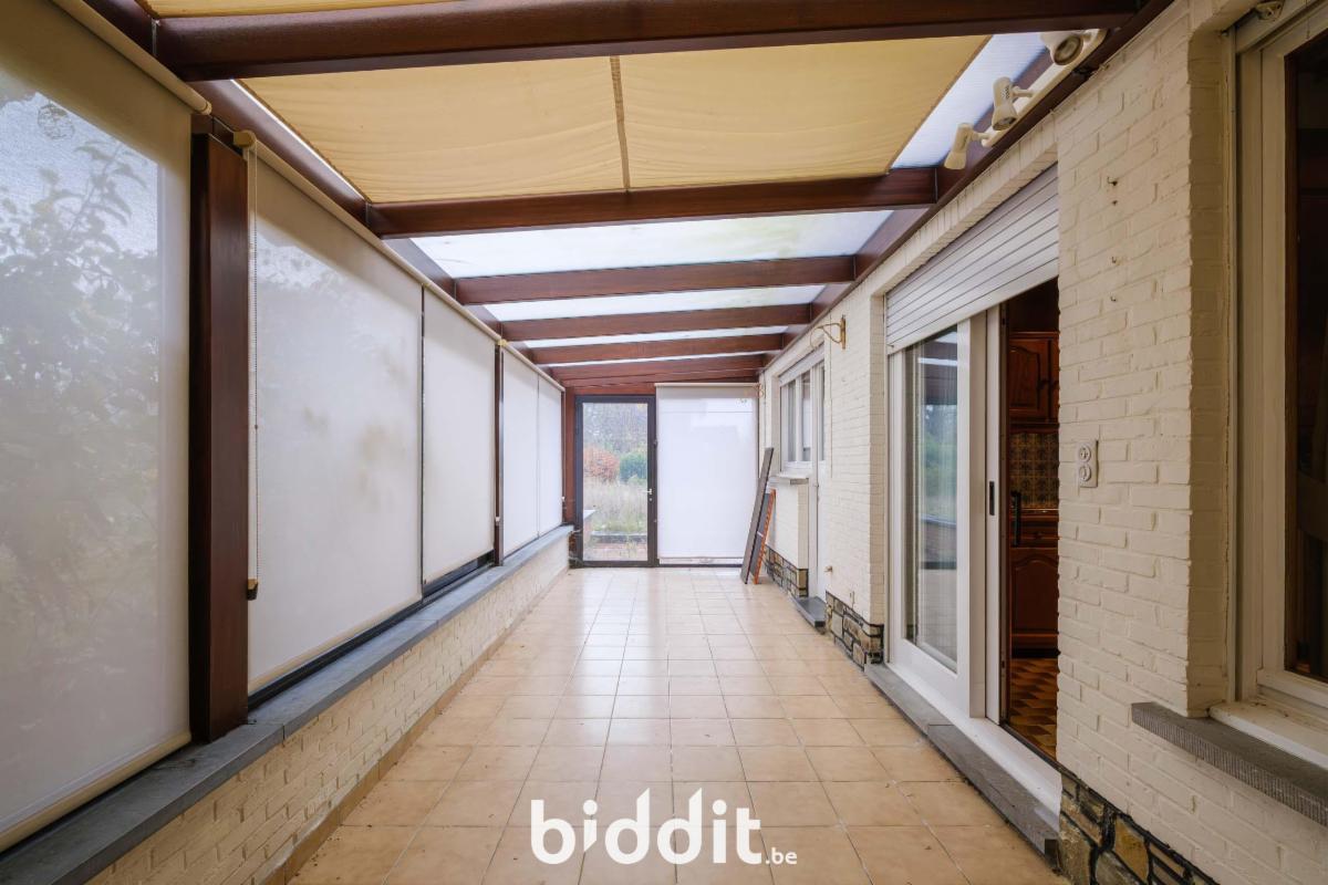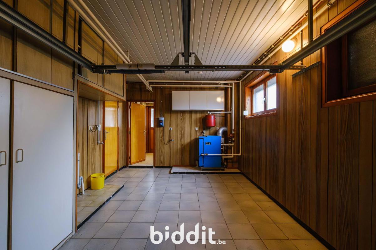 - gelijkvloers: inkom met toilet, living, keuken, veranda, bijkeuken en garage;